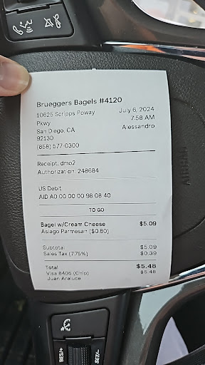 The staff seemed more interested in themselves and talking and flirting with each other than the customers. One guy got his order and stood there waiting at the register to pay and leave for three, four, five minutes while three or four employees were hanging out. The popular staff members seemed to delegate the unsavory task of actually working to the less popular staff members, and so they had an unhappy looking woman come over and deal with me so the cool staff members' happy play time could continue. I finally looked over at the poor guy waiting at the cash register and told him he could probably just walk out with his large order without paying and no one would notice. We laughed but it was obvious he was irritated and really wanted to leave before he was late for something where hungry people were waiting for him. I dared to address one of the socializing staff members and direct his reluctant attention to the customer waiting at the cash register. He winced in pain and said some unintelligible remark in Spanish to me as he got some other person to go help the poor guy. The customer thanked me for helping him when he was finally able to go about his day. My own transaction was smoother, but probably only because I had called their attention to the fact that none of them were paying attention to operating a Bruegger's Bagels. I mean, they looked like they were having fun. They could've been recording some kind of reality TV show about how smart and funny and cool they all are with well-hidden cameras and the Bruegger's Bagels setting was just incidental to their charming personas. But the hungry people with tragically less entertaining lives who go there for food probably...