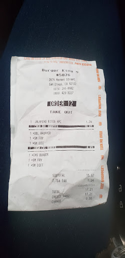 Read moreI WILL NOT RECOMMEND THIS BUSINESS... I was looking over my bank statement on line and notice that my recipe had a lower amount than what was taken from my bank. I called the restaurant they were nice but did nothing. I after more calls and weeks later with being totally ignored . I called the corporate offices they were polite but it's been weeks and still nothing, corporate must train them to be nice and carrying but just ignored the and they go away. I WILL NOT RECOMMEND THIS BUSINESS, unless you liked getting rip off. I WILL NEVER GO TO ANY BURGER KING AGAIN, they will never get a chance to rip me off again, too many other places that are better...