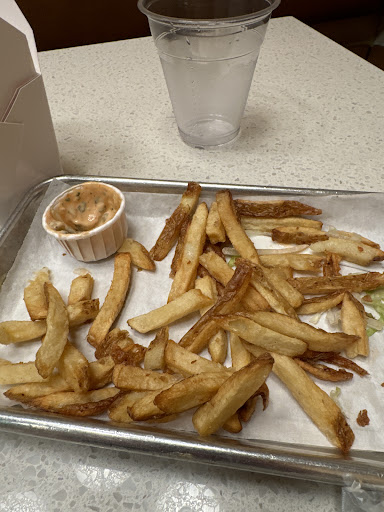 Read moreI know this place just opened, but that is no excuse for a complete lack of customer service. As I was ordering my food, an employee squirted ketchup all over my very expensive white sweater and in my hair! The manager was apologetic, but seriously? I assumed they would offer to comp the fries I ordered, but she surprisingly did not. Then, instead of expediting my order so I could get home to get the ketchup off myself, I waited there for 10+ minutes.