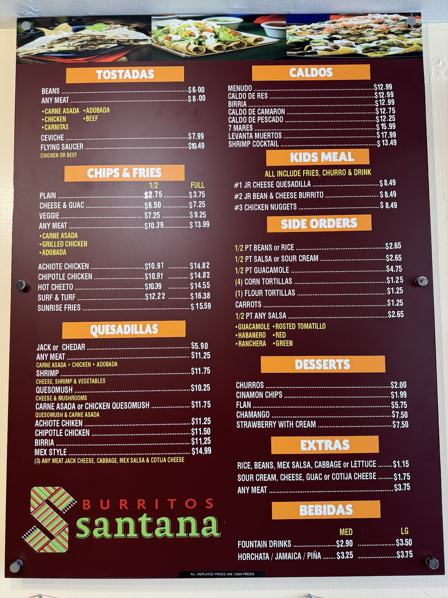 Read moreI was recommended to this place by a friend who hadn't been here since before the pandemic. It seemed simple and clean inside, not fancy. The big screen TV had a documentary on about drug trafficking. Lovely viewing for the lunch crowd. 😑 I ordered the chicken enchiladas combo and only waited slightly less than the 10 minutes the cashier had told me. The two enchiladas looked so good, I attacked them first. Boy, oh, boy, so much chicken packed in there and so nicely seasoned! I didn't stop until they were gone. Then, I tried the rice. Nothing special, which was not only disappointing, but surprising, considering how awesome the burritos were. How hard is it to make flavorful rice? I tried the refried beans next. Eh. Again, just ok. I texted my friend my thoughts and she said she used to go there all the time and it was her experience that the rice and beans were "hit and miss." Well, if that's all that's hit and miss, I'll certainly go back to try more items because those chicken burritos were delicious! They have quite an extensive menu with pictures all over the walls so you definitely know what you'll be getting. I'm looking forward...