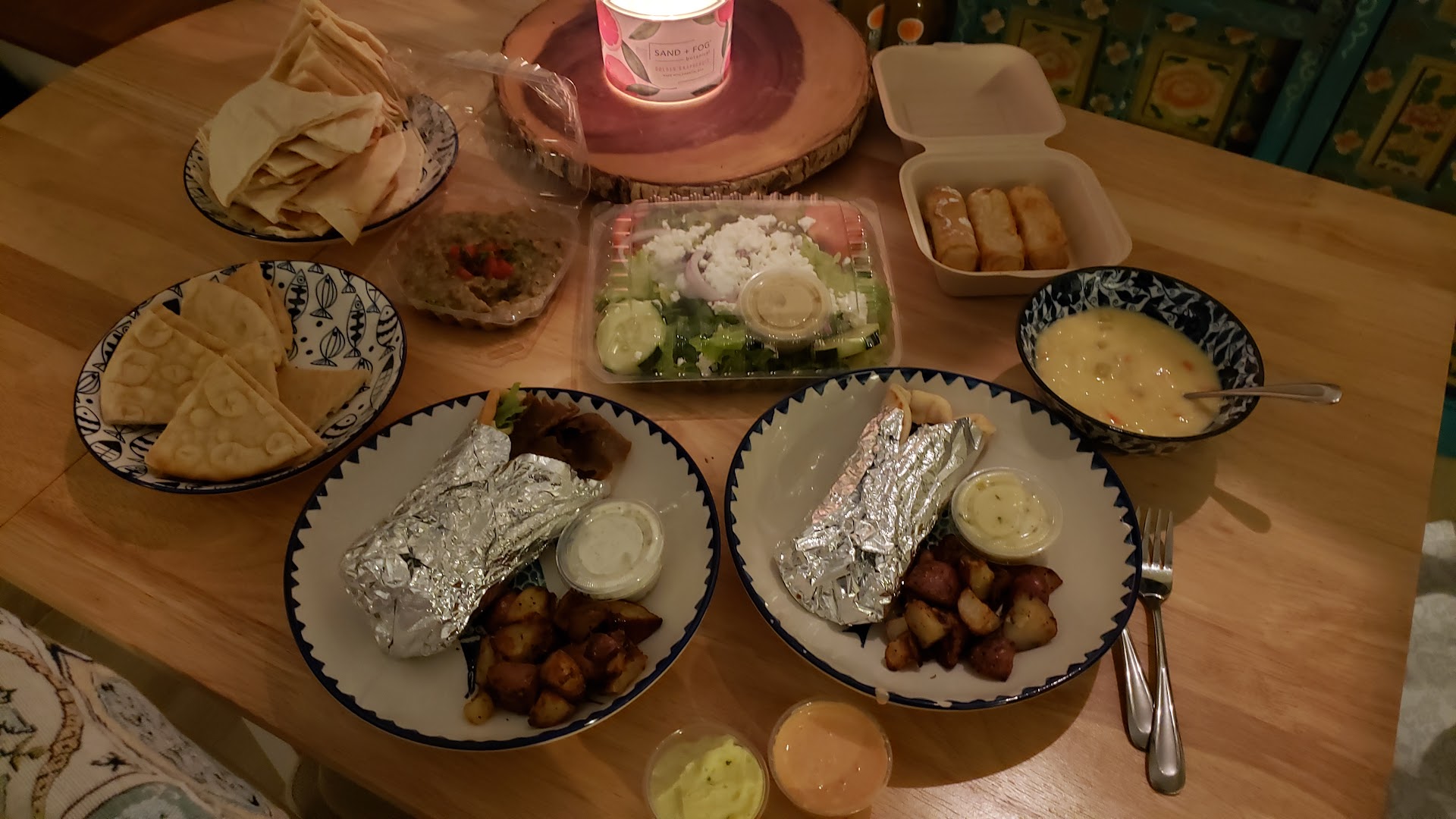 Overall can't wait to try other wraps and dishes and desserts here, and when COVID restrictions ease up, am excited to dine here in person for the beautiful atmosphere. Great service for pick up, was ready in the 30min they said when we ordered it online via their website. Their website has pics of everything btw, makes it super easy to order especially if you arent that familiar with Greek food. Very happy with our sample feast tonight and we...