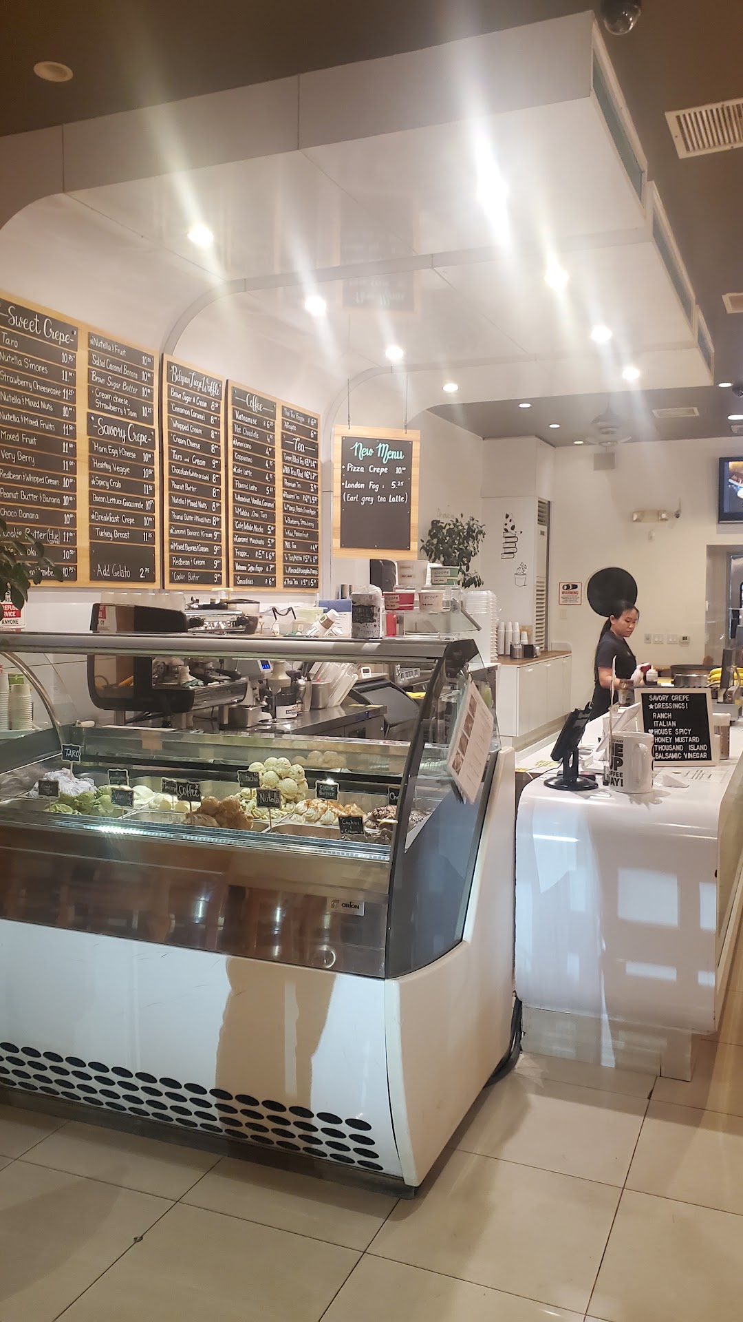Read moreTaken from my Yelp review on 6/2/2017. Came here for some desserts after dinner at Mignon Pho + grill on Wednesday May 31st at around 22:15 (10:15pm). I ordered 2 scops of gelato and my friends ordered some crepes. The cashier who attended to me was nice to make the ice cream for me, so I tipped $1. The gelato was good. I ordered the pistachio and my friend ordered the vanilla. My other friends who ordered the crepes also enjoyed it. We got good timing because it is normally crowded especially on Sunday nights when I make a trip to Nijiya Market. Lucky for us, there was a group of six people that left when we got in. There is also free wifi, but do not be like me and forget to ask for the password because it is locked. I would not recommend people to come here just for gelato though as it is a bit pricey and the scoop size seems small to me. Instead try the crepes that my friend ordered. Also be prepared to look for parking on the street as it get busy during the peak time hours. Overall, I enjoyed the place, staffing was nice, and the dessert was not too bad so I rate...