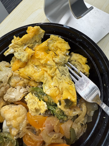 Placed my order for pick up. I show up 7 minutes after the pick up time but it wasn’t even ready because apparently my ticket never printed for the kitchen. Finally get my order and when I get back into the office I noticed they forgot my protein. (They did offer a gift card for the rushed job) Please look at the questionable color on the eggs.