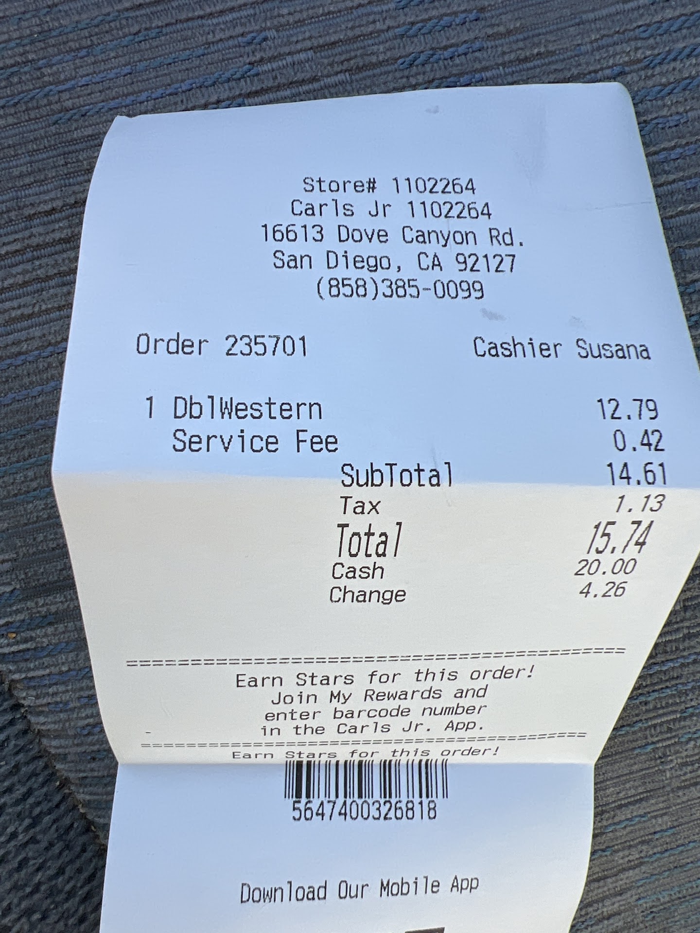 Read moreI stopped by the Carl's Jr. on Bernardo Center Drive to pickup a couple of items for my wife. Rather than go through the drive-thru (which was busy), I opted to park and walk in. Once inside, I saw one person working at the drive-thru window and two other people in the back preparing orders. There was no one (that I could see) that was working the front counter. There was a self-order terminal but since this was my first encounter with a terminal like this, I opted to see if someone would eventually come and take my order. After a few minutes of waiting, someone did arrive. Once that happened, my experience was much better. The order taker was personable and professional and helped me with the special order I was requesting. Within a few short minutes, my order was ready and I was on the way home. My wife said the food was fine (typical of restaurants of...