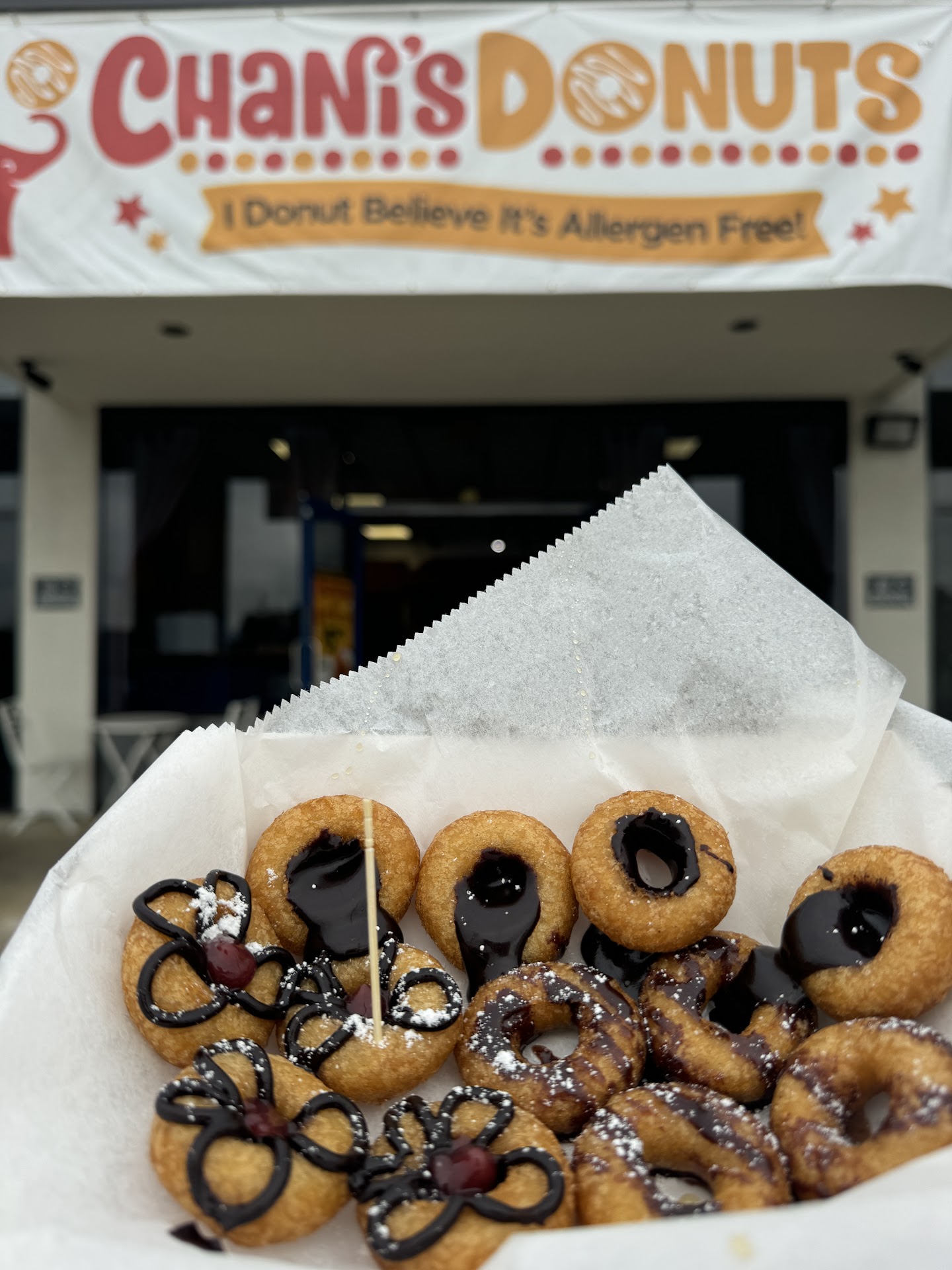 Read moreHubby and I drove down from Oceanside just to try these! So tired of the dense cake donuts they give us "gluten free " people. These are EXACTLY what you want when you think carnival donuts. Our server was a bit unfriendly or monotone but then met the owner and she's wonderful. A few critiques would be: Make these to order! Stop making ahead of time and serving them cold. WAAYYY better fresh and hot. The topping. It's just ice cream topping drizzled on the donuts. I want an actual glaze. Would be awesome if the could make them a bit bigger to allow for more flavor toppings. Also, funnel cake would be awesome!