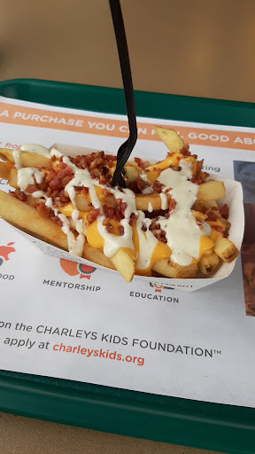 Went to have lunch here with the family and ordered a philly cheesesteak sandwich because the menu description looked appetizing with ingredients such as steak, onions, green peppers, and mushrooms. After getting my order, I sat down to eat and was disappointed to see that there were absolutely no green peppers and mushrooms in the sandwich. I took the sandwich back and spoke with the Charleys employee and explained what was wrong.