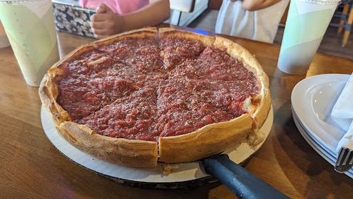The food is top notch. Fresh, crisp, flaky crust, wonderful. The Chicago is crazy filling, too. We got a large and everyone ate their fill: me, my wife, twin boys-10, another boy-8, and the 4 year old. We even brought two pieces home.