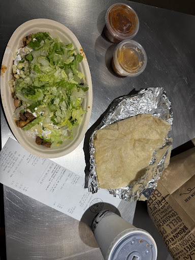 Got my bowl for 12 bucks today. It wasn’t bad, however this is definitely the kind of location where you want to ask for half chicken half steak for your bowl cause they’re skimpy. I saw them make a burrito for the girl in front of me and I literally felt bad for how little that thing was. But anyways, if you don’t want to get scammed make sure they’re adding 2 rice scoops and then specify that you want half of one meat and half of another. It sucks to play mind games with them but her scoops were nice so I’m just glad I got what I wanted. My friend did steak and she only got one scoop🙁, not even heaping. They did get me with the guacamole tho. Make sure you tell them that LAST because they will put it in the middle even if you mention it lastly. I got nervous and just told her everything I wanted on it and she was the one to decide what order the ingradients went on so next time trust I will be acting like I’d ALMOST forgotten the guac for extra measure. Outside of that always get a tortilla on the side and ask for a water cup that just so happens to not be see through🌚 and you have your side and drink cover. I also have a love/hate relationship with the vinaigrette so try that if it interests you. Overall, not a bad location and I’d go again. It was better than the chipotle I had in Chula Vista so 🤲 ig that has to mean something. But pay attention here I’m just sure they have a lot of college student customers and they gotta make the ingredients last but if you’re reading this, stay strong solider and make sure they don’t scam you before you can scam them🤣🤣🤣🤣 And the drinks station is well organized with a properly carbonized diet coke so more...