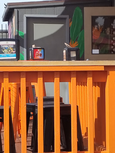 Okay so this is the third City Taco that we visited. We're trying to visit them all to give them all a fair rating and I must say this is the most interesting one that we visited thus far. We have been to North Park City Taco we have been to Pacific Beach City Taco now we are at the Ocean Beach City taco. So let's talk about what's interesting about this City Taco but first let's talk about the atmosphere. The atmosphere was quite quaint I must say. They had an eclectic array of different colored tables and chairs! I don't have a pet, but they had a dog park I mean it's a cute little setup. In the same lot you have the little floral shop in the mix as well as a place where you can get acai, smoothies and breakfast. I can only really explain it through pictures. So here's the interesting part you enter as if you're going into an actual restaurant. But the guy goes over to a food truck to get your food. Now mind you everything tastes and looks like the other two places it's just coming from a food truck. I found this to be super interesting. Anyway...