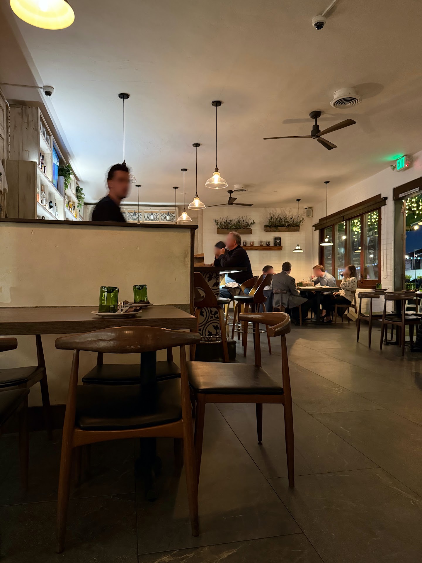 We were told there was no more indoor seating, and we'd have to sit outside, and then we had to wait a few more minutes before a table was ready for us. We would have prefferd to sit inside, but I appreciated the heating lamps outside. We were given a choice between seating that was across the sidewalk from the restaurant/outdoor diners and a small table in the corner by other outdoor diners. We chose the latter. The table was very unstable. We unfortunately felt overlooked by staff at some points throughout the meal.