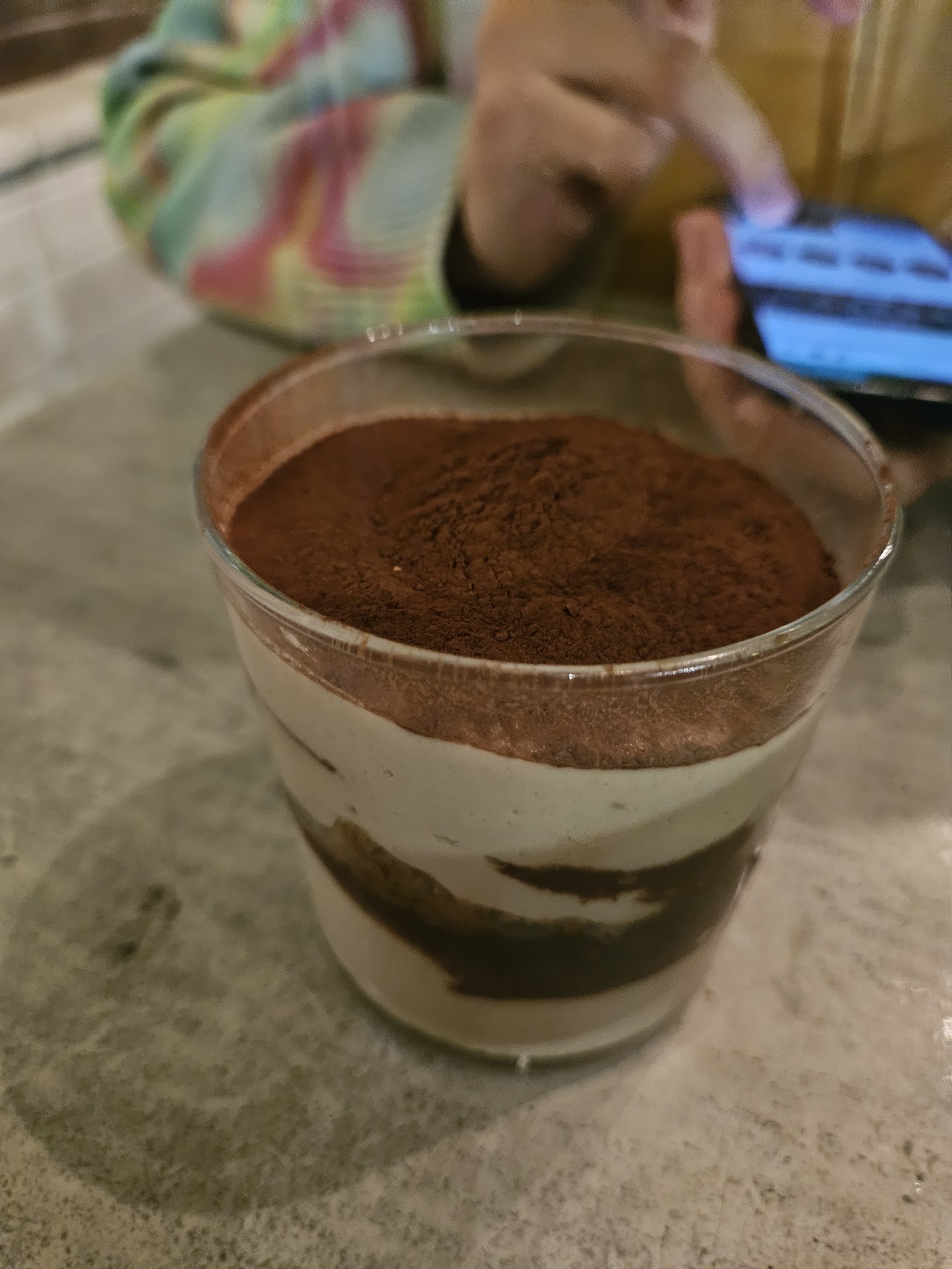We ordered the vegan tiramisu, which I was super excited to try and appreciate them having. The first couple bites were similar to doing an easier version of the cinnamon challenge because the top layer was a heaping helping of what tasted like chocolate milk powder. It didn't taste like coffee at all. It was pretty good, but the texture got slightly unappealing by the end.