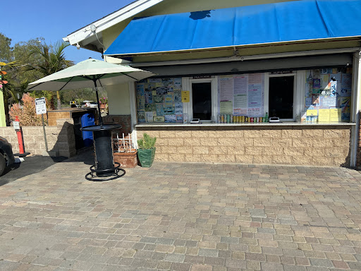 Located on the north side at the very most west end of Sorrento Valley Road, it has amazing ambience with comfortable outdoor seating. There is a beautiful ocean breeze blowing while you sit comfortably outside surrounded by all sorts of plants and trees. Directly across the street is the river, so you are dazzled by the lushness of all the trees and other vegetation which grows along the river, from the mountains to the ocean! Although the seating area is tables on unpaved dirt and well shaded, the beauty and ambience of smelling the ocean breeze or hearing the river in between traffic is tranquil and soothing.
