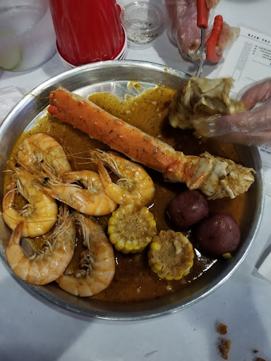 Read moreFood was alright... had better seafood boil at other restaurants. But was mostly disappointed in the serving size and experience. They were quick to seat us but slow to take our order, while there was only one other party in the restaurant. We ordered 1 lb king crab and 1/2 lb shrimp w/ their add on combo ( corn, sausage, and potato) and this was all we got (pictured) .... we also ordered the fish n chips and the tenders & fries, plus 3 sides of rice and side of sausage plain for the kids. The only item that was worth the price was the tenders and fries. The sausage was thinly sliced... they brought out only 4 slices initially. We had to bring it to the waiter's attention, that it should have been 6 or 8 pieces per the menu. Although they did bring out extra afterwards, they failed to include any sausage in our seafood boil per the add-on combo we ordered. Additionally, they also only brought out 1 pair of scissors & claw cracker for a party of 7, and 1 little container of salt/pepper. The only other thing they got right was the portion size/quality of rice no wonder this place was not busy at all...