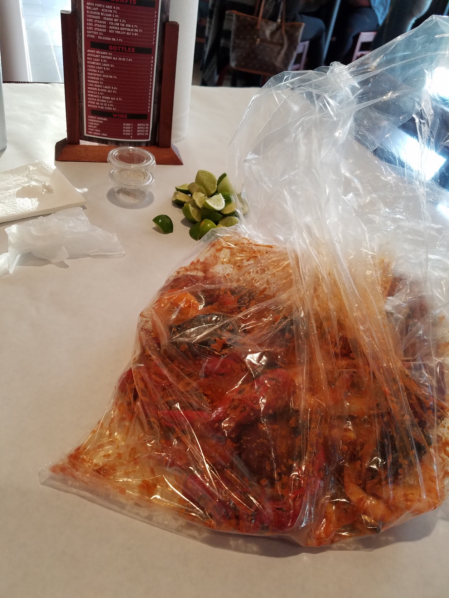 I did quite a bit of looking when trying to figure out where to go for my birthday this year, about a week ago. I considered a prime rib dinner, considered lobster, considered a nicer restaurant or an old favorite. I wanted to go someplace somewhat special but not break the bank. I narrowed it down finally to two places and ended up deciding on this one because I have lived in Texas and hadn't had a seafood boil in ages. He got the shrimp Po boy which was huge and he was really happy with it especially for the price. I got the scallop boil. I haven't had scallops in forever. I didn't realize it didn't include any sides so I added in potato and it ended up being three medium-sized potatoes I think. The scallops were good size and there were several of them, comparable to what I would have gotten at Anthony's or someplace I'm sure. They were cooked perfectly. I'm glad I asked for the mild spice level because it was pretty spicy, enough to make my nose run and my eyes water. I got the lemon garlic sauce and it was really garlicky which I liked. They bring you a ton of lime pieces which we loved also. I like the place well enough I want to go back sometime and try the lobster or something else. I would recommend it to anyone who loves seafood and particularly seafood boils. When you decide you want to go back to a place before you've even finished eating your dinner there, I figure it must be good. I didn't catch her service name but she did say she was new and it was her first job and she'd only been there for 2 weeks and I think she did a...