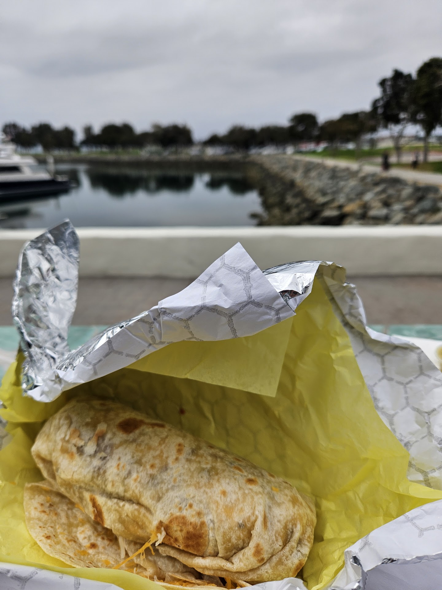 The food didn’t take long, and I sat down looking at the marina. The Pollo Asada was a little bland, but it could be the after effects of the cold I currently have (not COVID), but the most forward flavor was the corn tortilla, which was nice. I just wanted a little more heat. The Baja Shrimp taco was amazing, if a little over stuffed, but I would definitely recommend. The Mexican Street Corn was good, even if off the cob was a...