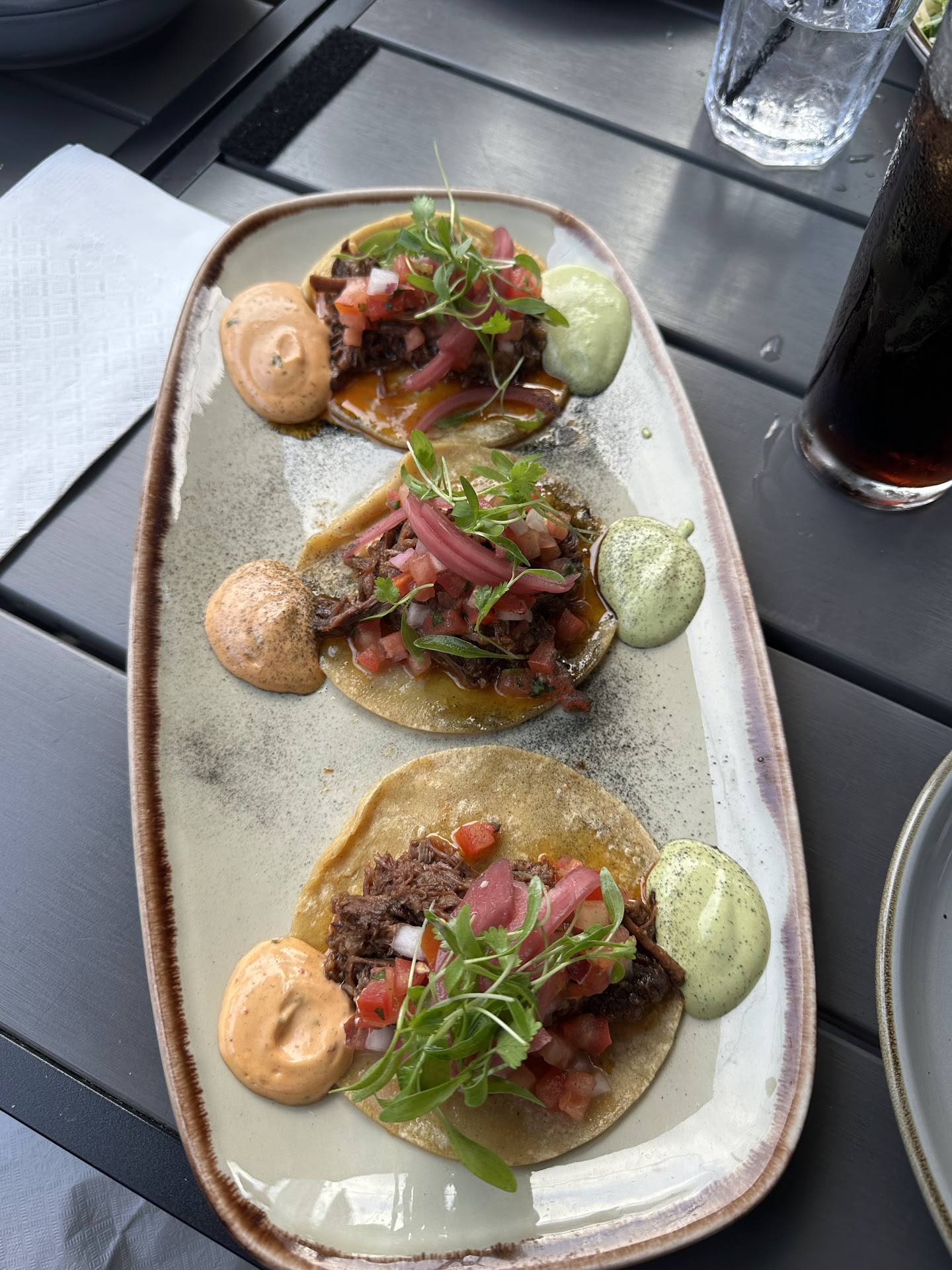 I started with pork belly bites, and they were certainly a great choice. The pork belly was delicious and tender, not to mention beautifully presented on the plate with mini corn tortillas as the vessels. Loved the pickled onions and sauces that came on the plate.