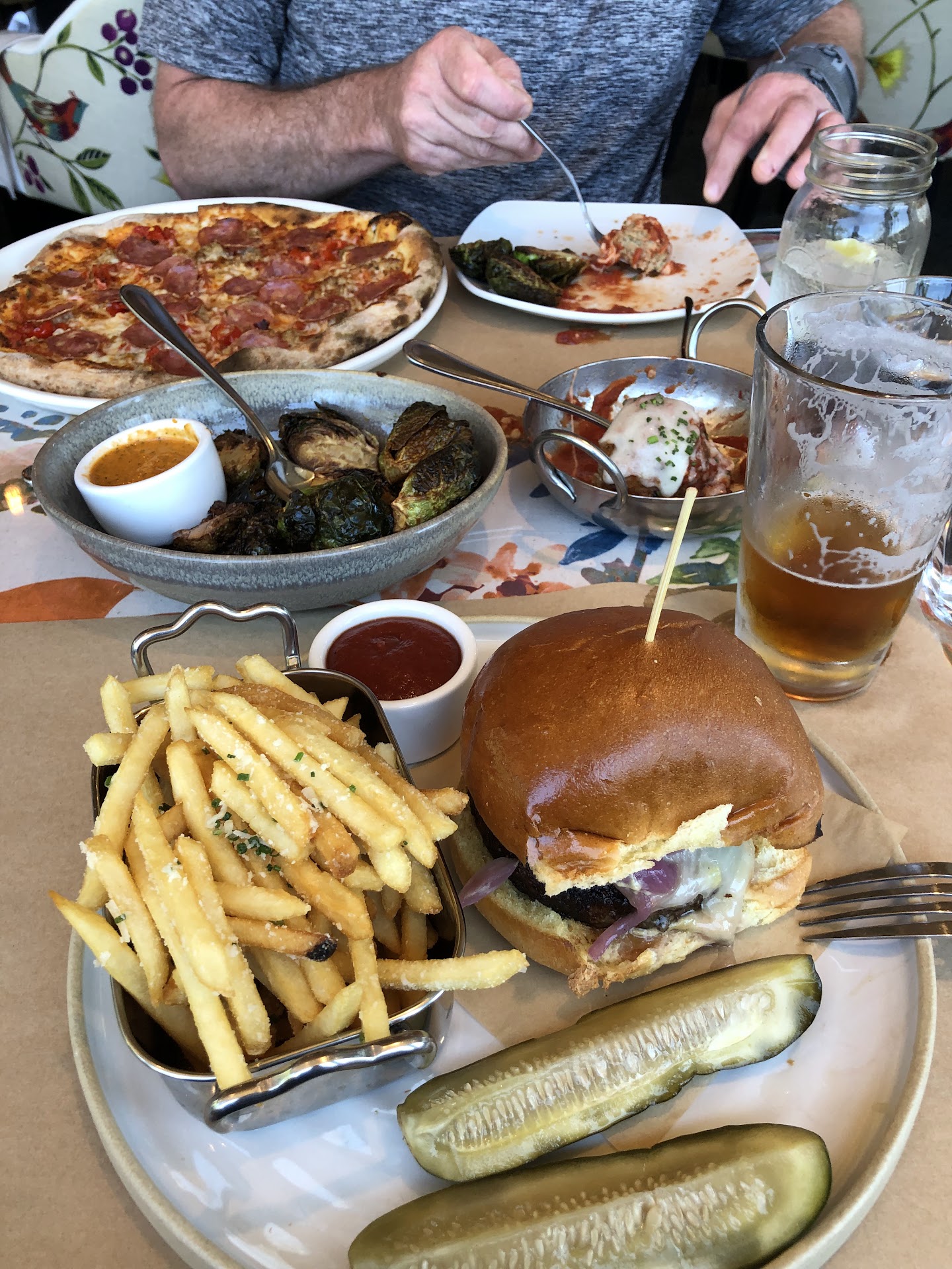 Porchetta & Brie with honey is so creamy and bold at different times it's very well balances as a whole. No real truffle oil is used in the making of the truffle fries. Any real truffle or extract would make the oil alone hundreds of dollars thus out of a price point for fries as a side for under $20, think about it people. Roasted mary's chicken is not worth the price. Asparagus, chard, peso, polenta, pretty basic ingredients. I did like the pistachio pesto, creamy but to me could use more garlic. Love the grilled Octopus, truly Mediterranean. I stayed away from the Pizza due to not using a trady brick oven and being a little to creative on the ingredients and profiles. I was most surprised by how they have such a great wine selection, but their balsamic was westernized. Little sweetness and not thick at all. Not everyone is used to that type of balsamic, but once you've had it there is only the inferior kind and real balsamic. Fried and stuffed squash blossoms are amazing, despite the neutral flavor of the flower the herb ricotta, pesto, lemon aioli compliment very well. Despite their Italian"ness" I never felt like I was eating there, just trying their food.