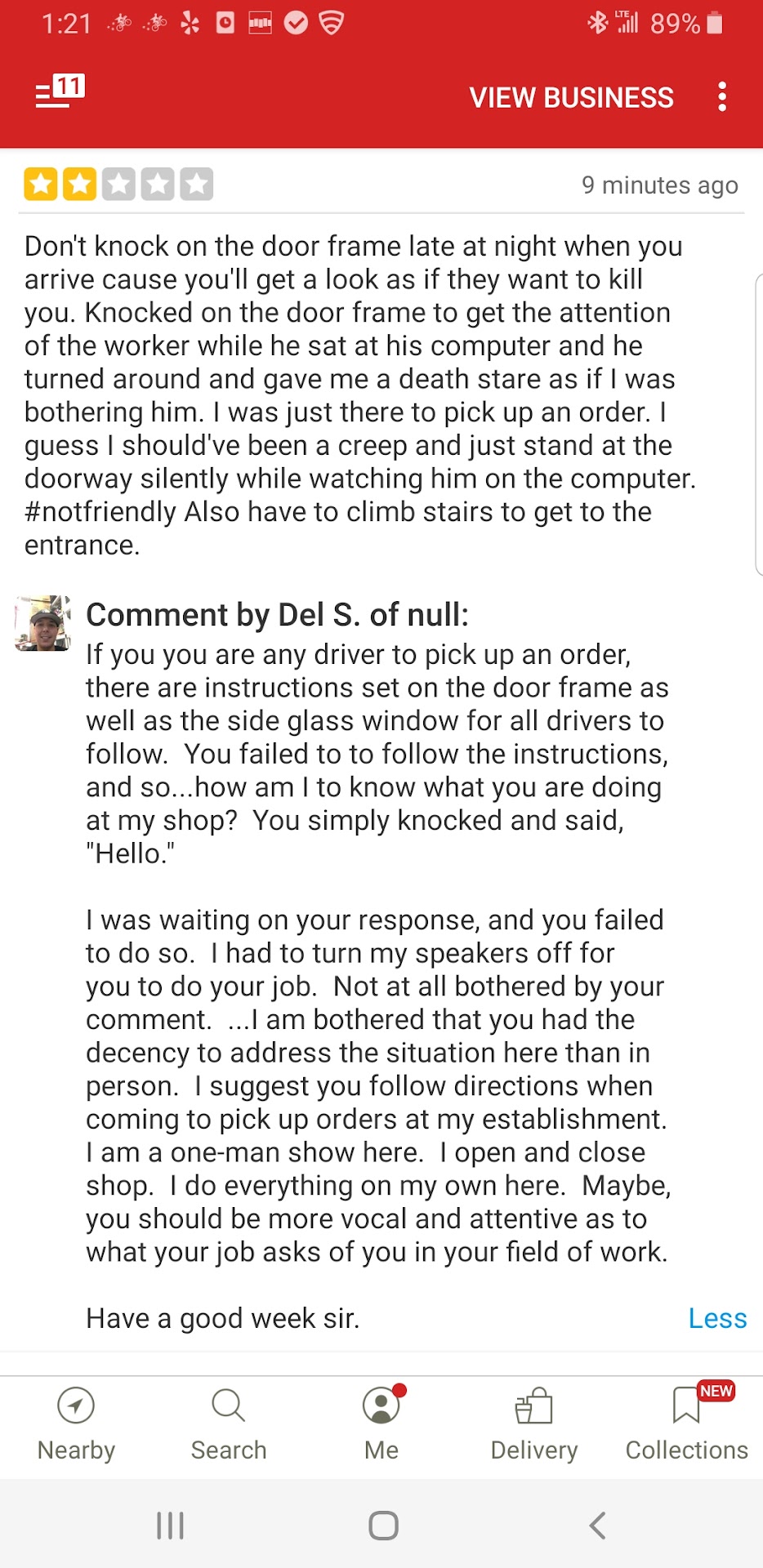 Read moreDon't knock on the door frame late at night when you arrive cause you'll get a look as if they want to kill you. Knocked on the door frame to get the attention of the worker while he sat at his computer and he turned around and gave me a death stare as if I was bothering him. I was just there to pick up an order. I guess I should've been a creep and just stand at the doorway silently while watching him on the computer. #notfriendly Also have to climb stairs to get to the entrance. Wonder if there's an entrance for the disabled. Then when you leave your review on Yelp you get criticized by the owner. Terrible...