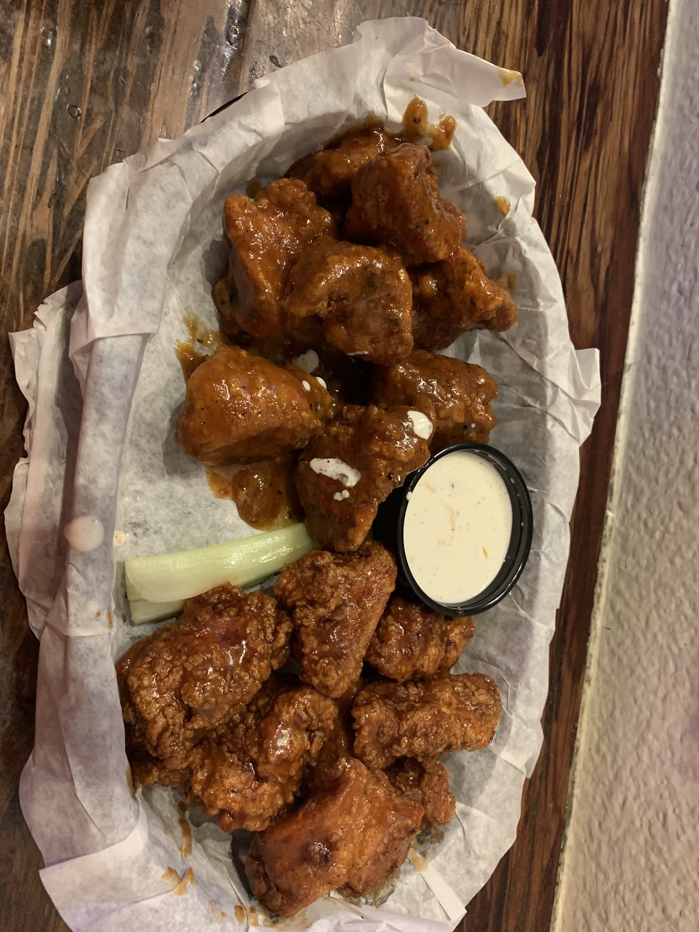 PMP warrior wings: to me tasted like a spicier version of the ninja, but still good. Made me sweat and we had to ask a couple times for a decent supply of napkins. 4/5