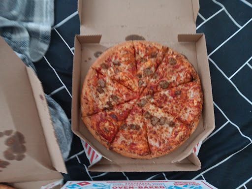 Read moreIt's Official, today I had my LAST Domino's pizza!! Well, I was kind of going between Hut n Domino's depending on who had the special I liked but as of today I wont go by specials anymore because I had a 3 ingredient large from Domino's and it might've as well been just a cheese pizza (and not even that much cheese either!), cause the ingredients were extremely skimpy to the point that literally a couple of slices had none of the 3 ingredients!! And I'm not even that fond of their crust, which finally seems to have a little less of that hideous cornmeal, but still pretty bland and overly chewy. Speaking of slices the employees didnt even have the courtesy of cutting it half way decent so that the slices can be somewhat similar in size. Yes I know they're in a hurry but it wasn't even a busy time of day. And so I came to pick it up and I'm still expected to tip?? I thought tip was for delivery? So, no...not a good experience. I will maybe try Papa johns or just simply stick...