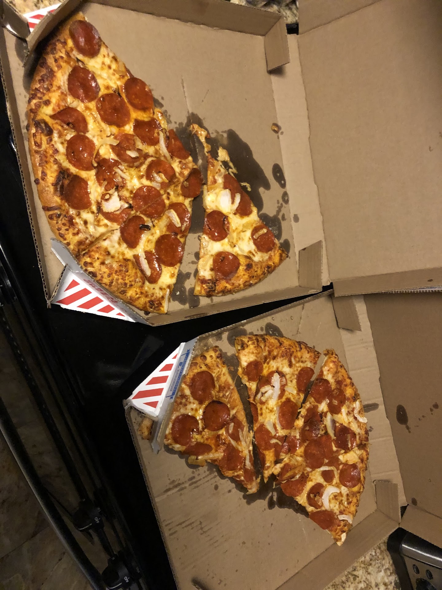 Read moreJust ordered for delivery right now and just got my pizza. I got an 8 piece wings with buffalo sauce and my wings had literally no sauce on them and it seemed like they ran out of buffalo sauce and didn’t want to prepare an extra bottle and give me the correct amount because it was so close to closing time. The pizza I ordered was also a sausage and I had two extremely small slices and then two huge ones and I swear it felt like I was eating a pizza with light cheese most of the time because there was barely any sausage or cheese on it. I’m not going to order from this place again because I know for a fact they’re undercutting the portions of toppings and it’s extremley noticeable with the cheese and the buffalo Sauce and is extremely annoying because I’ve seen other dominos stores make dank pizza but this one is bad. I’m not ordering from this store again and if you decide to I hope you have a better...