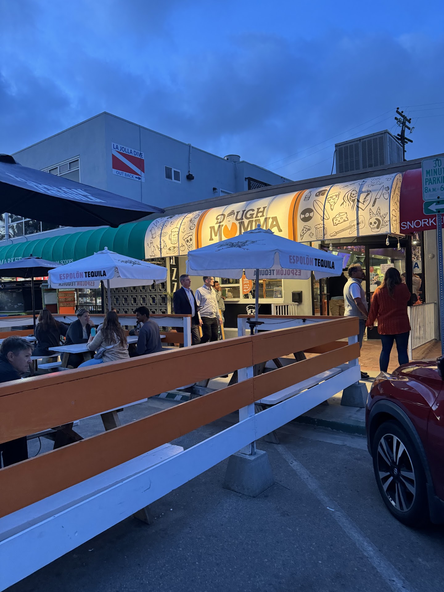 Read moreGreat selection of pizzas either made as the whole pie or the East Coast style of single pizza slices. Single slices are available to-go fairly quickly as they are ready-made and crisped-up in the oven within a few minutes. Plenty of fun drinks on tap as well as other options like red wine and ready-mixed cocktails. The garlic parmesan knots are awesome⌠yummy! The indoor space is fun with lots of TVâs and plenty of places to sit. The decor is funky with upside down beer taps hanging from the ceiling. Also, in front of the store the parking spaces have been converted to outdoor dining as part of the city of San Diegoâs "Spaces as Places" outdoor dining program. There are large tables with bench-style seating, umbrellas and ocean views down Avenida de La Playa to the boat ramp. The enthusiastic staff are very friendly and...