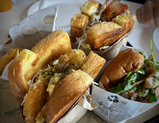 Egglet Deluxe Sandwich: Damn their eggs are so fluffy and creamy. The toppings are a good combination and their caramelized onions are🤌