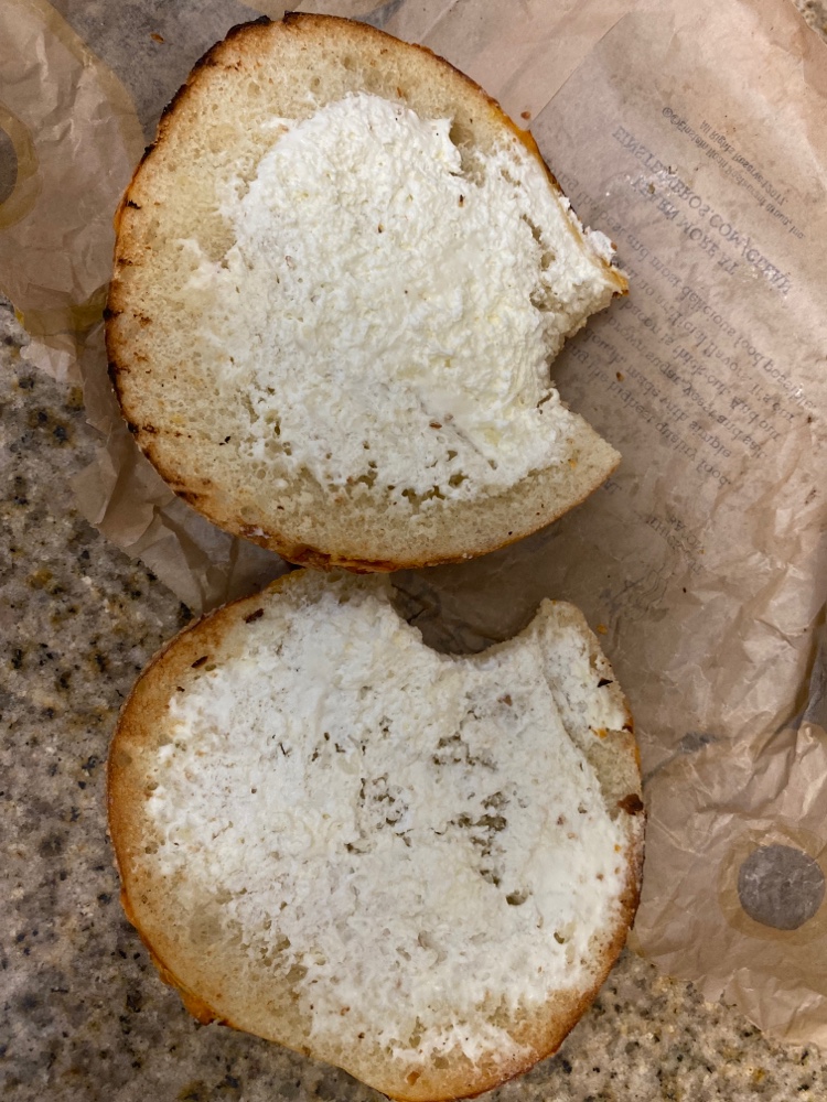 Not only was the tiny dollop of cream cheese barely there, but the bagel was BURNEDâand COLD!!! How do you do both??? Donât get me started on the lack of smiles behind the counter.