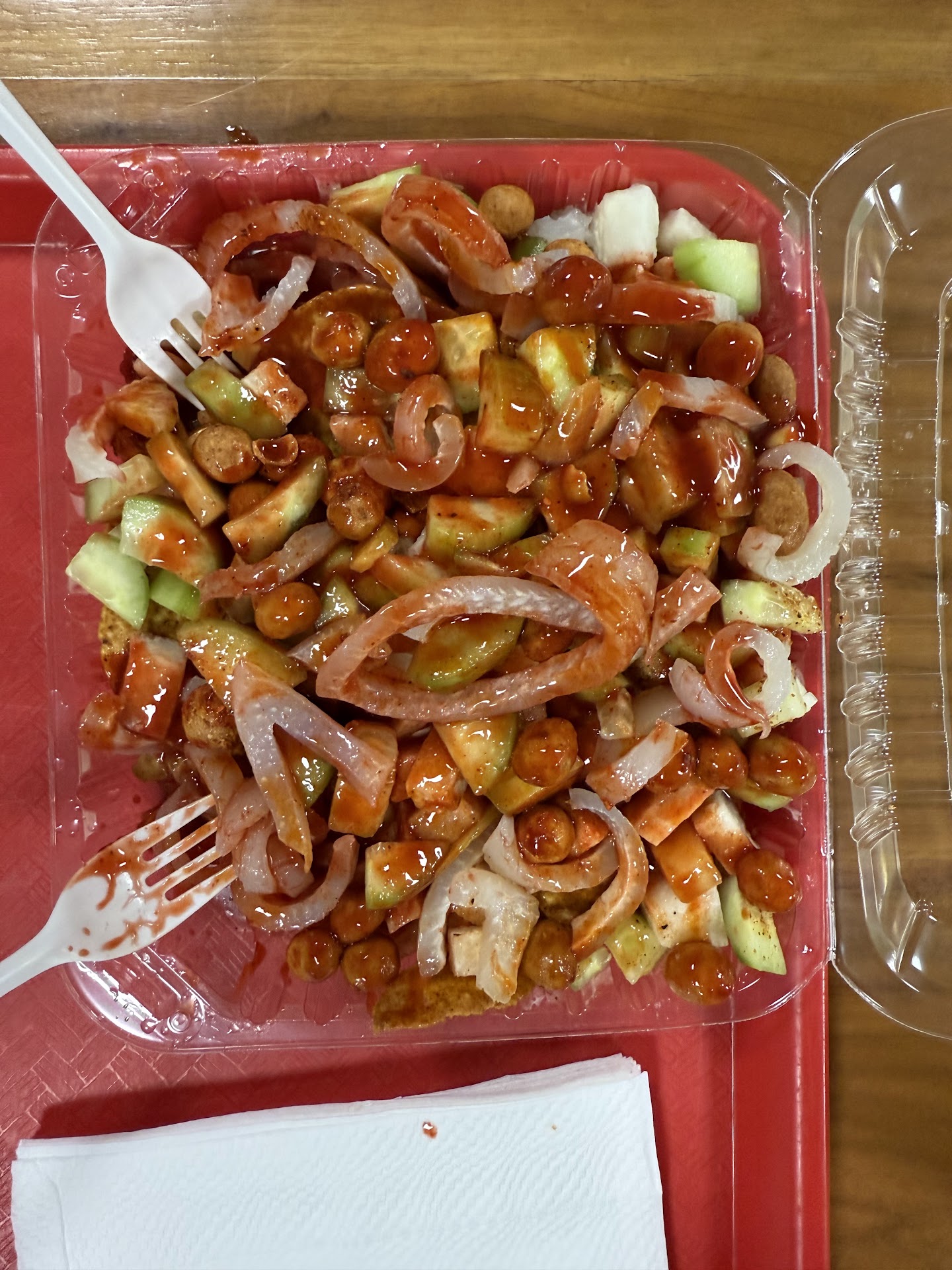 I’ve consistently waited awkwardly in line for minutes on end despite the fact that there is 3 employees in the back doing a whole lot of nothing and their penny pinching has just bugged me out because they still have the nerve to overcharge items and upcharge card processing fees all while screwing the consumer. Their business model isn’t good and I try not to judge on first impressions but they’ve let me down on multiple different ocassions. This time, we went for some tostilocos after we had a sudden craving for them after eating at Tacos el Güero next door (Check their adobada 99¢ tacos!!) and were let down by their lackluster flavor as well as the lacking chacachacas. We paid 8 dollars, 160 god forsaken pesos for some wack tostilocos that weren’t worth the time or money we spent on them.
