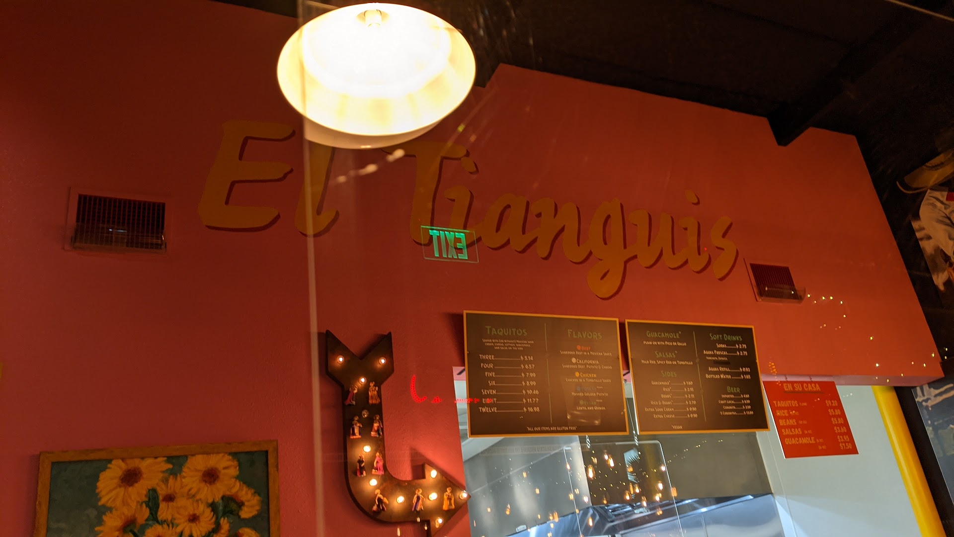 Pronounced "el tee-ain-gees" (kinda rhymes with "hangry", and apparently means "street market"), this little gem was a wonderful find. We rolled in close to closing time, but were still served and allowed to dine-in by the kind and friendly owner. The joint has a casual vibe and also allows for takeout, but I'd recommend sitting in to eat your taquitos as fresh as possible! DO note that, much like the rest of San Diego at this time, strict COVID masking up, vaccine checks, and distancing are NOT currently enforced here.
