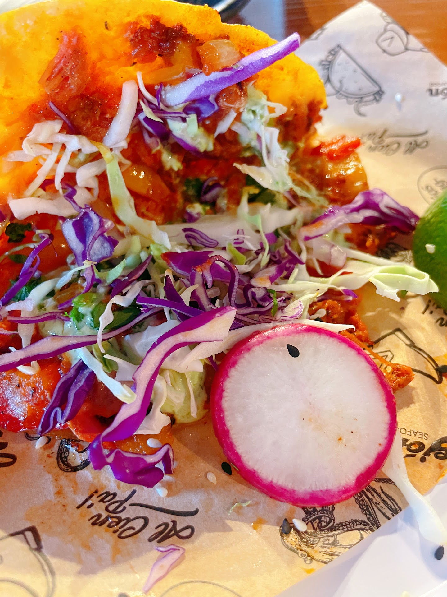 Octopus taco - amazing. The crispy onions gave it an added crunch and generous on the octopus. Choice of spicy salsa macha or pesto. We got salsa macha, it’s like chili oil.