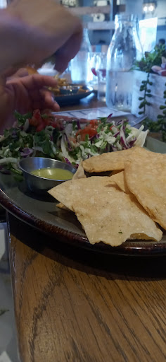 As for food I ordered the " Spicy Fried Chicken Sandwich" with tangy coleslaw, house pickles, spicy mayo aioli - the bun was so delicious, the sandwich was not so memorable. Ordered with side of Honey-Cinnamon Sweet Potato Fries, which were so good! My boyfriend ordered the " Baja Fish Tacos" that had beer battered white fish, pico de gallo, coleslaw, chipotle mayo, lemon vinaigrette, with side of tortilla chips. The tacos were missing garish like cilantro or another side sauce.