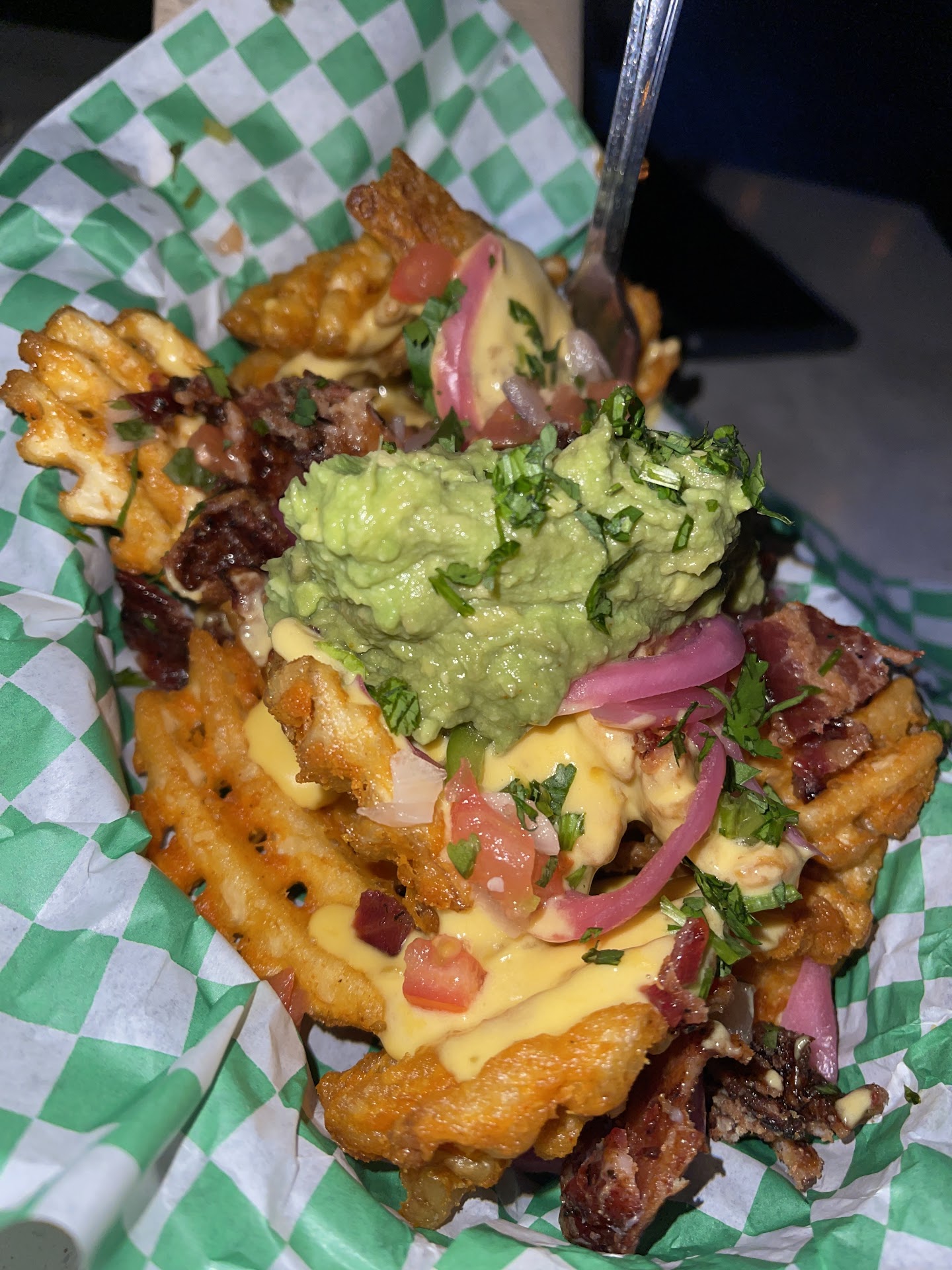 I tried the Mini Nacho Fries and Korean BBQ wings. This was enough to share between two people. The Nacho Fries were delicious. The waffle fries were so crispy and it was topped with a ton of bacon, avocado, pickled onions, and nacho cheese. Would come back just for this. The Korean BBQ wings were good, I would get them again. Drinks were standard.