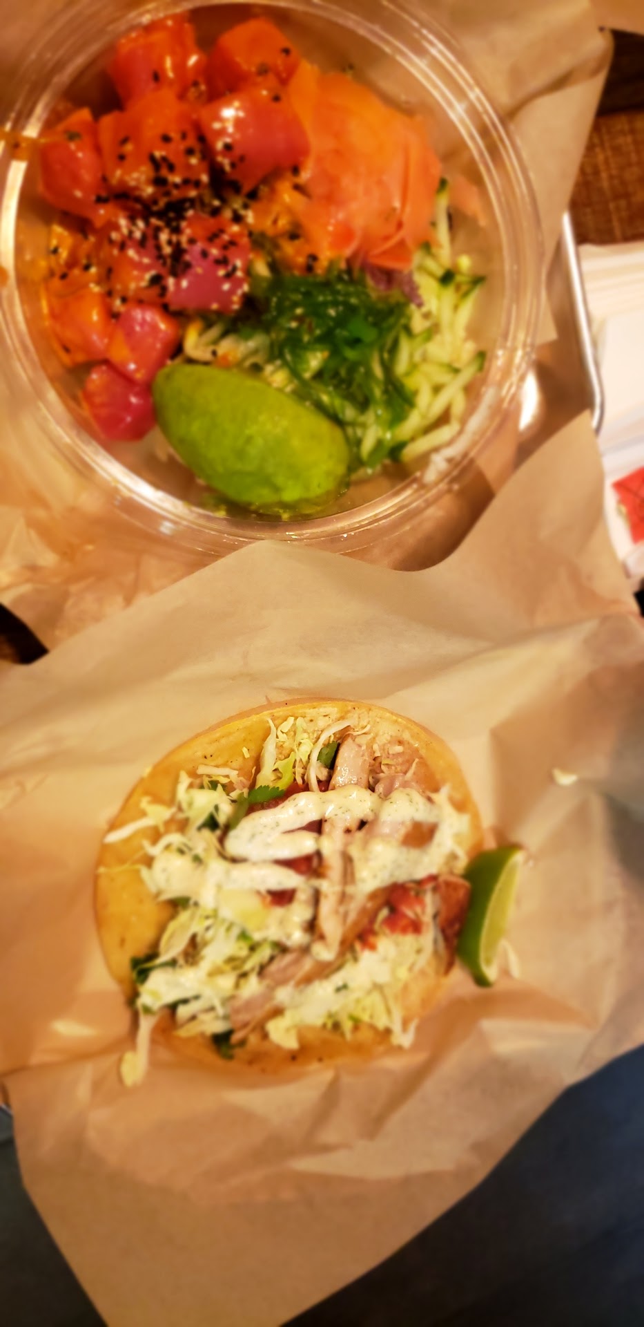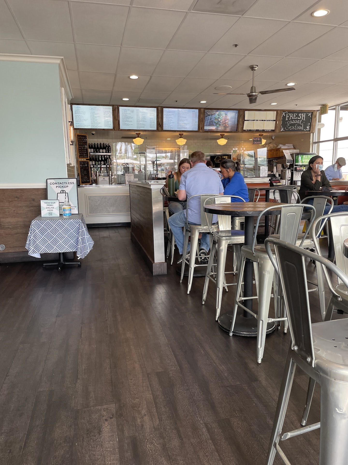 Pleasant surprise! A power outage at our first option lead to a delicious dinner at the Fish District. This self ordering/pay first restaraunt is a bit on the small size, but perfect size for their "strip mall" location. A few TVs showing sports and jazz type music playing in the background. Customers are responsible for clearing tables, so a few were dirty from inconsiderate diners. The food was amazing! Portobello Mushroom fries were a delicious starter. While the looks were less than appealing, they were enjoyed by all. The basil aioli was superb! Chowder Bacon Fries, another starter will definetely bring me back again! A seasoned fry coated with chowder and bacon were pure deliciousness in a cup. The coastal style Taco with grilled ahi tuna was heavy on the cabbage, but lots of meat for a taco. The blackened seared ahi bowl was flavorful. The wasabi was overpowering but overall the bowl was good. Lots of meat (mostly raw....hence "seared") in the bowl. The Baja Style Taco with mahi mahi was very good, although next time will request flour tortilla. The flour tortilla would make it an outstanding option. The Poke Spicy Ahi was delicious. It was rich with flavor. Cabbage, cucumber, spicy mayo and more meshed well for a delectable combination. The original fish and chips were delightful. Light and flaky with a remarkably yummy tarter/dill sauce. It was not too oily, and the portion size was perfect. Highly recommend this restaurant. We will make the drive from east county to...
