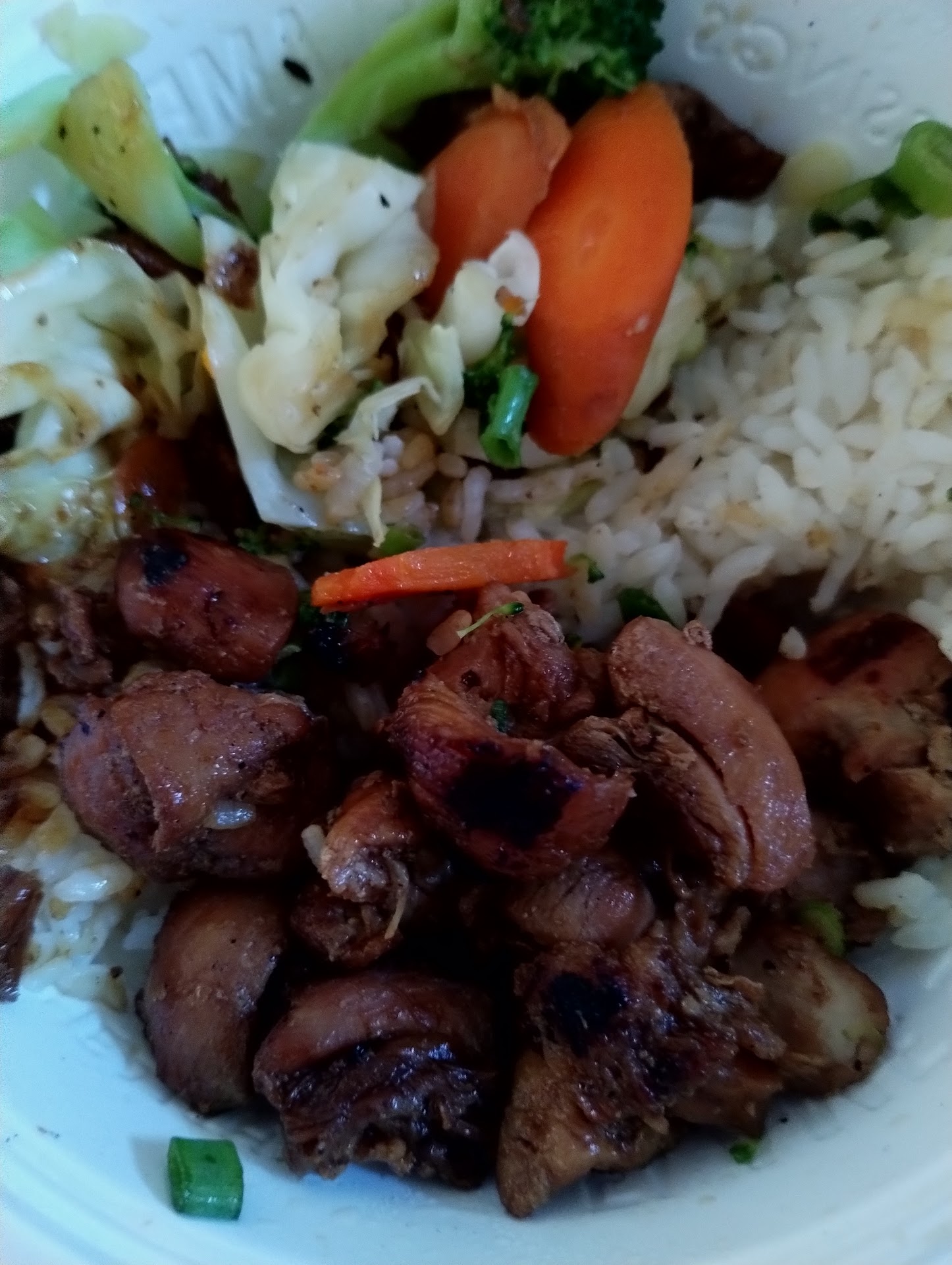 Ā Ā Ā Read moreThe front counter girl was not very friendly. Did not even greet me. She slid my order to me and kept acting as if I was not there. As if! š Asked her some very simple questions and she did want to be bothered while doing absolutely nothing, She might of filed her nails while looking at me. I felt unwelcomed. I thought it seemed like a healthy place and had a good price for 10.15 for a regular chicken bowl. I picked half rice and veggies. You can chose just cabbage, broccoli, or carrot. The mixed veggies are big pieces of cabbage. A couple little pieces of probably carrot and I think I saw broccoli. The cabbage are huge pieces . The meat was so dry, chewy, and rubbery. Tasted like it's overcooked pieces that had black char. It's either been sitting around a long time or was just rewarmed. I was very disappointed with this chicken. Rather go to Panda Inn in for a bowl. This place advertised how healthy they are and how their chicken has no hormones.etc. Don't think I will be back. Unless I'm craving dried up hard pieces of old tasting chicken. Also I decided to not put the magic sauce on bc it's really thick and syrupy looking. This was gross. Go to Apollo Loco for real Chicken that will not kill your teeth