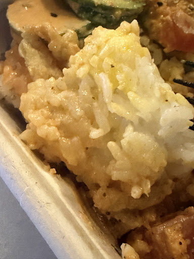 crazy cross contamination, got a bowl with disgusting super old overly fried tofu that was soggy. there was a huge piece of salmon in the tofu container and i pointed it out and the guy just stared at me blankly. i'm a very strict vegetarian and it's really bad service to not offer help to someone pointing out a potential allergy hazard on your line. they were rude PLUS there was supposed to be bread and i got 1.5 pieces of greasy, soggy pita bread. i want my...