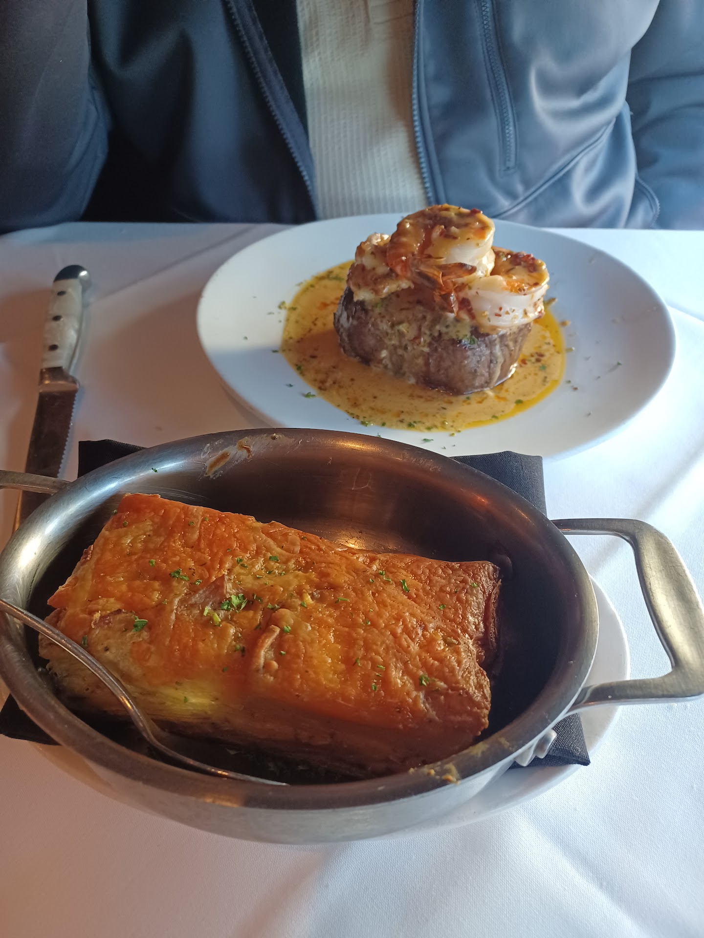 II. Food (Main Entree): A. Filet Mingon We ordered two, 8 oz, petite filet mignons. They were great. The Approriately portioned with a beautiful sear and taste. Each bite offered an exquisite balance of tenderness and flavor, although I'm not sure if it embodied the classic melt-in-your-mouth experience that only a well-prepared filet can provide. Cooked to a perfect medium, it showcased a subtle pink center, retaining its juiciness while achieving that slightly charred, caramelized exterior that added depth to every morsel. The seasoning was simple yet effective, allowing the natural, rich taste of the beef to shine through without overwhelming the palate. It was an indulgent, satisfying cut that delivered elegance and comfort in each forkful. My main gripe with this was the price. Go to 230 Forest Ave in Laguna Beach for a better and cheaper filet than this.