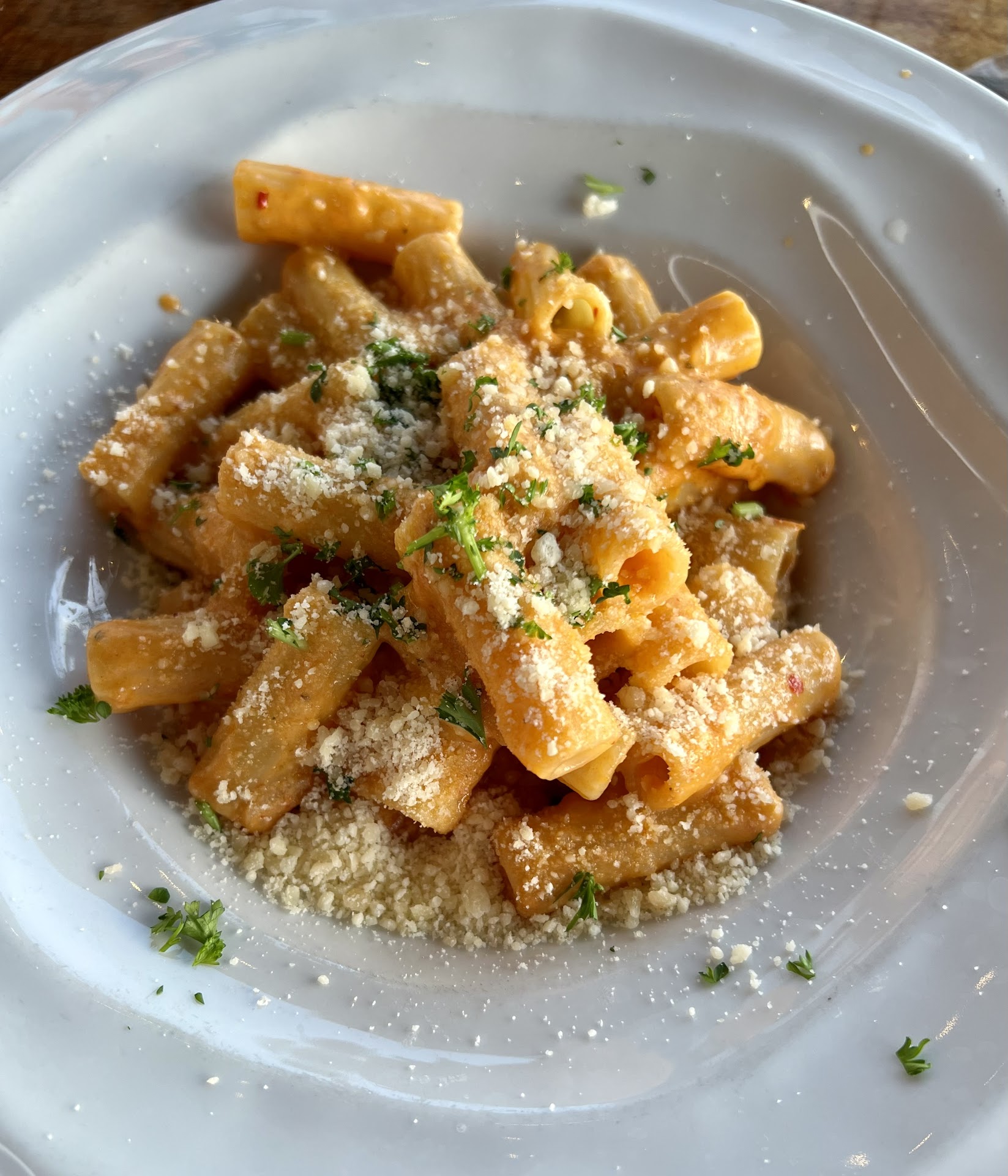 Lore aside: THIS PLACE WAS SO SUPER AMAZING!!!! We were so elated to have our expectations shattered! The wine was great, the staff were kind, knowledgeable, and attentive, great prices, and most importantly, the pasta was SOO DELICIOUS and everything we had been hoping for!! And bonus points for the complimentary bread basket! We went with two of the pastas our waiter recommended, the rigatoni piccanti (my favorite) and the pappardelle montanara (my partner's favorite). Both were absolutely divine and so flavorful. The tomato sauce on the rigatoni was perfection and the perfect amount of spice, and the pappardelle was handmade, comforting, and incredibly flavorful (but not to an overwhelming degree, considering it had truffle in it). It's been months now since we had the honor of trying this place and are still talking about how great it was to this day. This place makes me want to move to San Diego immediately. Needless to say, we can't wait to come back, and if you haven't tried this place yet, drop what you're doing...
