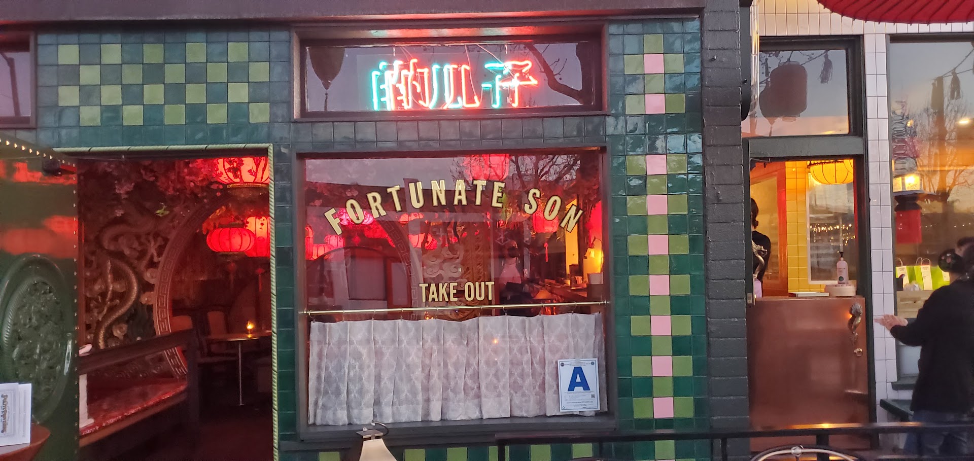 Read moreYou say there's no such thing as good Chinese food. Well I say relax and stop going to panda expres for a combo plate and telling everyone you ate Chinese for dinner. While I wouldn't go to fortunate son for a legit Chin food experience (I'd go somewhere that serves authentic dim sum) I absolutely love and adore this iteration. Fortunate Son is hip, it's chic, it's modern and yet it is aggressively bedazzled with all that gaudy Royal Mandarin essence you've come to expect (and LOVE) from a "Chinese restaurant" done right. It's Royal. Its Red Neon Lights. It's tacky and it feels right. Red lanters, gold chachkis and jade detail make for a true feast for the eyes. The only thing missing is an opium menu and a happy ending but hey it is Adam's Avenue so all that extra stuff is a short walk in any direction if that's what you're looking for. The food, tho not dim sum is definitely yum-yum and I'm here for it. We have gotten the Egg Foo Young multiple times and paired it with the Pork Belly and Green Bean side dishes (our last 3 orders verbatim) the egg Foo Yung is crispy yet fluffy and the gravy is made by some young guy (in the kitchen) ... its delicious. All the flavors are there, the food is prepared well and served up hot and fresh for us to go... covid is still a thing and we didn't feel like waiting for one of the few outdoor patio seats. But you can also order from the bar next door which is it's sister eatablishment. They have free match books which imo should be mandatory at any modern establishment as well as from any authentic hole in the wall Chin Food joint. Fun atmosphere, good food and delightful vibes.. ill give it a 5 star rating. All positive feedback. Even my fortune cookie was positive. Fortune cookie say: "Don't worry its...