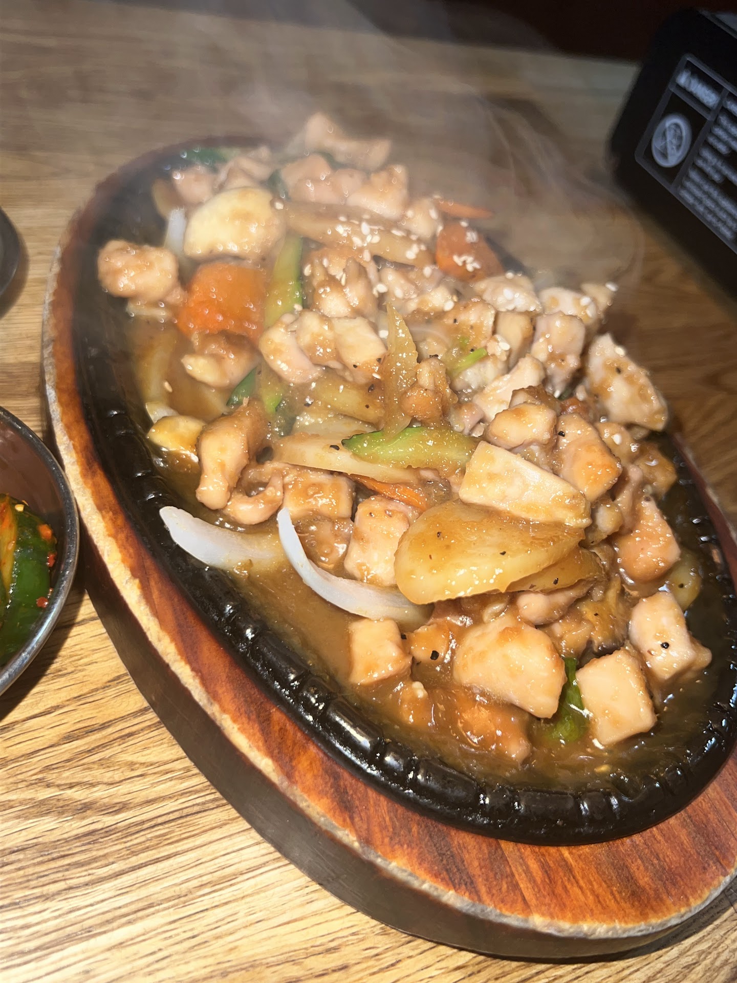 BBQ Beef Short Ribs were delicious! Perfectly cooked and perfectly seasoned over sautéed onions. It did not disappoint. The spicy chicken had rice cake slices in it with onions carrots and other veggies. It was perfect over some rice. The spicy rice cakes were cooked perfectly and were true to their name.. spicy! But just the right amount of sauce and rice cakes! Best I have ever had! The steamed dumplings were pretty good and loaded, authentic Korean dumplings with a good sauce for dip! The Beef Bulgogi was top 3 I have ever had and that’s only because I have spent some time in Korea before but it was well seasoned, perfectly cooked and perfect with rice! The Kimchi Pancake was delicious as well and so large! Bigger than my chopsticks! Great flavors and so enjoyable. The sides (bonchon) they gave before the food came out was also enjoyable; enough to hold you over before the food came out and each side dish is made to perfection. I even asked for more of them!