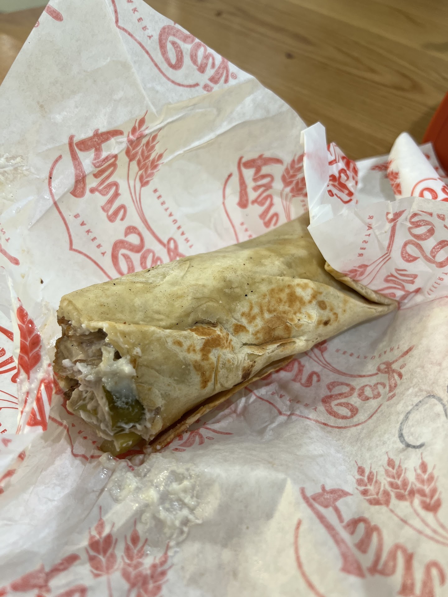 The pita tasted more like tortillas than pita bread. The hummus was decent, but nothing to write home about. The tabouli wasn’t my favorite. My friend liked it, so I’ll call it a wash.