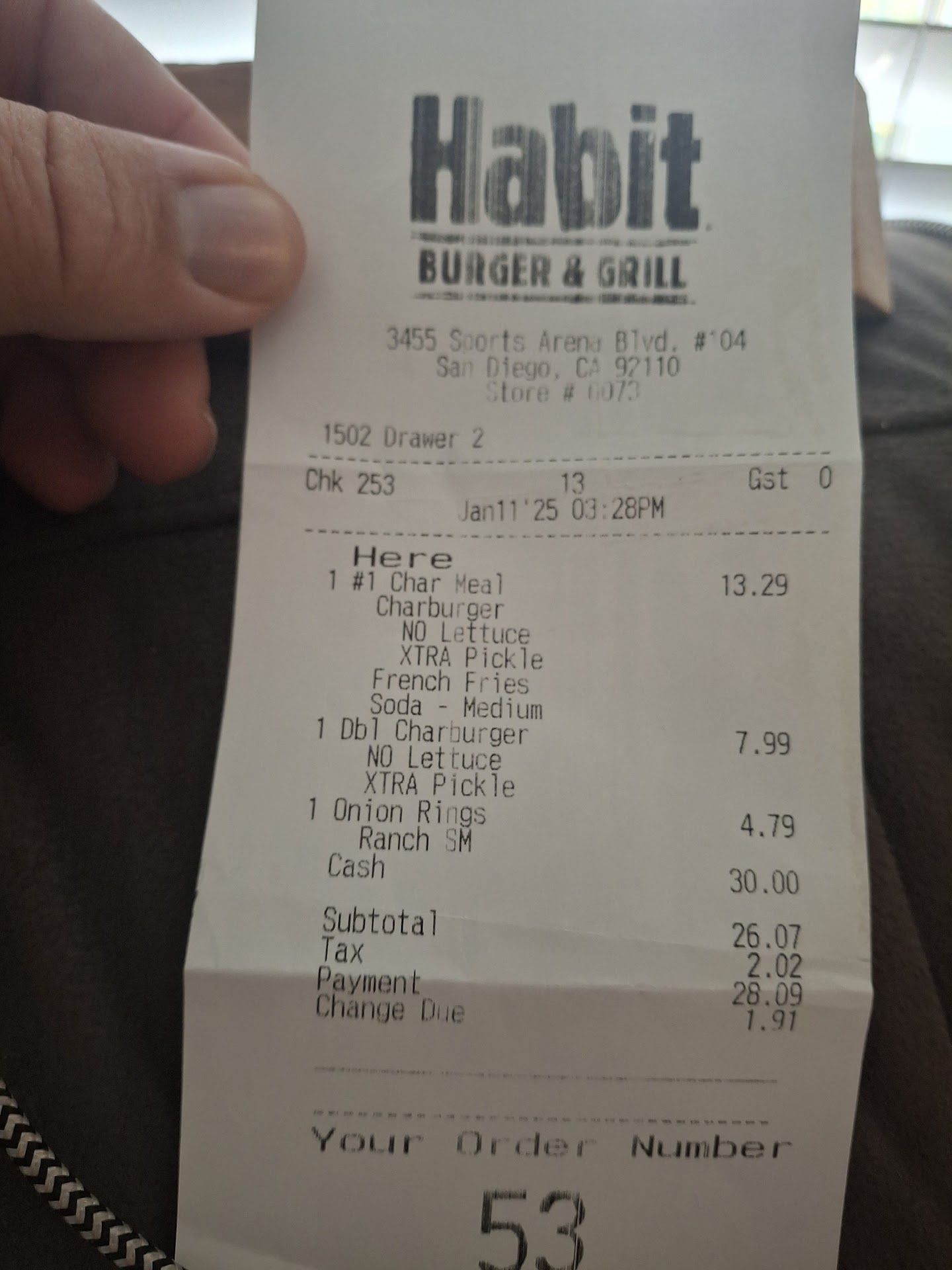 The other time habit screwed up my order (again ordered through their app). I picked it up this time only to realize once I had gotten home that it was not correct. When I called they contacted the store and had them remake my order. I picked it up again, went home only to realize it was wrong AGAIN!