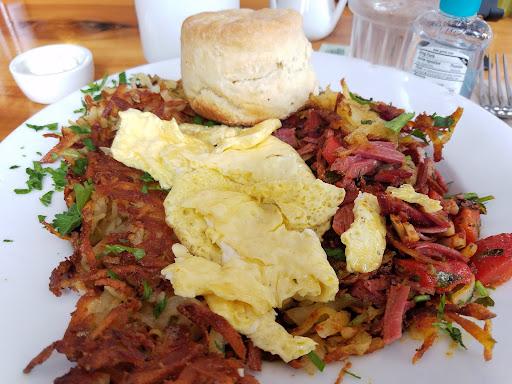 Read moreLocation Location Location, this place is a little hidden Gem, but the Local's sure do know about it. This is a normal locals corner breakfast restaurant. No loud screaming kids from the hotels near by, just everyday normal adults grabbing breakfast in between working from home. It has a great laid back and relax vibe for being so close to downtown. Let's hope the crowd from the Hob Knob does not find out about this place. It reminded me of stepping back in time a little and on my visit, it was raining and cold, so it felt like an old warm and friendly spot you may pop into before going skiing, LOL It reminded me of being in Colorado for some reason. This place has such huge potential, but I think the patrons as well as the owners want to keep it simple and just the way it is, and that is not a bad thing. I will say, this spot would be a great venue to rent out at night for private events and such. They are only open for breakfast and early lunch. Pricing is average for the area, but that is the thing, not a lot of options in this area for this type of spot, it is not to hip spot, it is just a big plate of food, a hot up a coffee and a big smile...