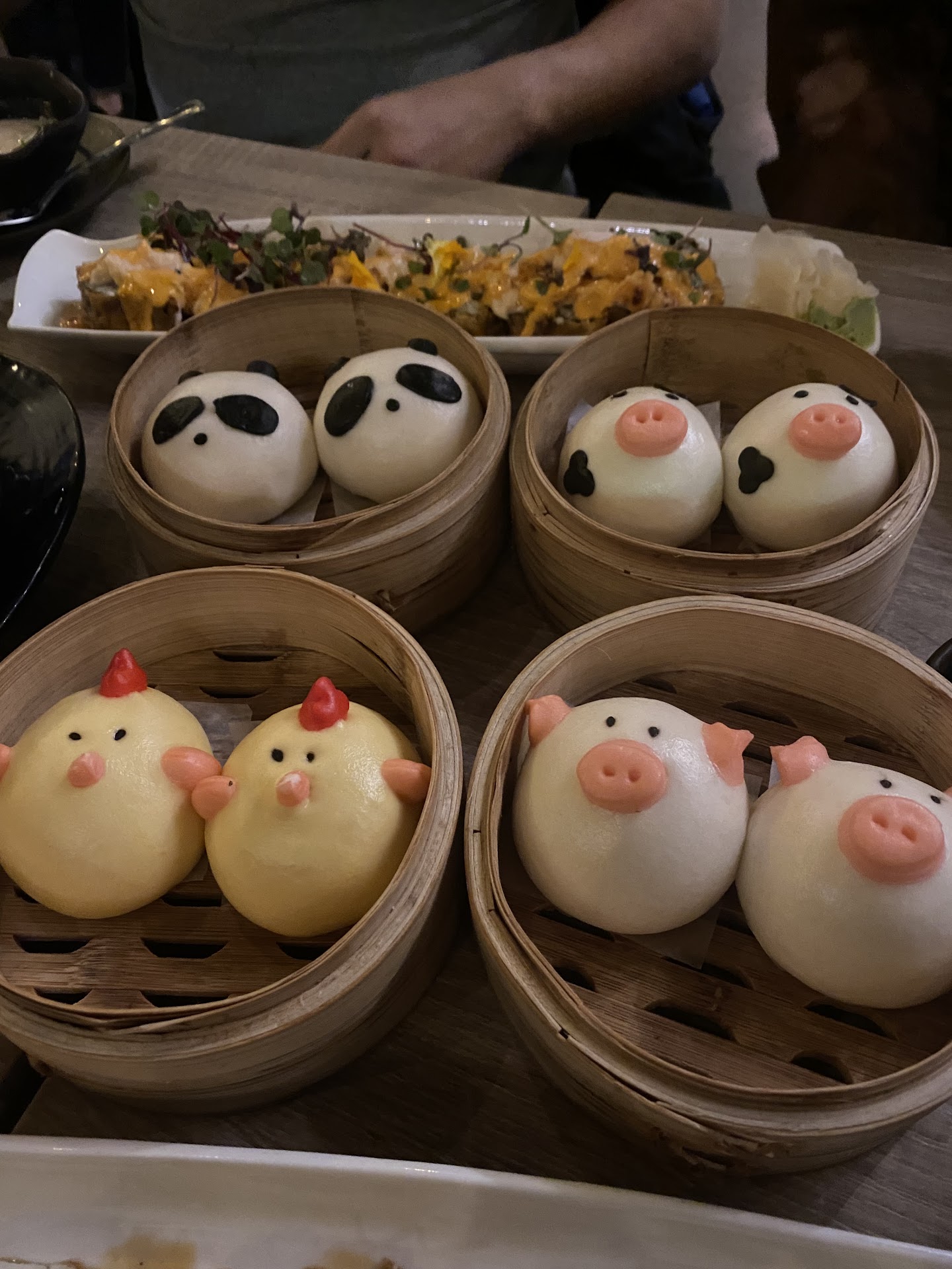 Karaage Crab wontons Pork potstickers Crunchy salmon tempura roll Dynamite roll Flying pig ramen And of course, the character buns - we tried all them, with the exception of the dessert nutella bun as they did not have any available