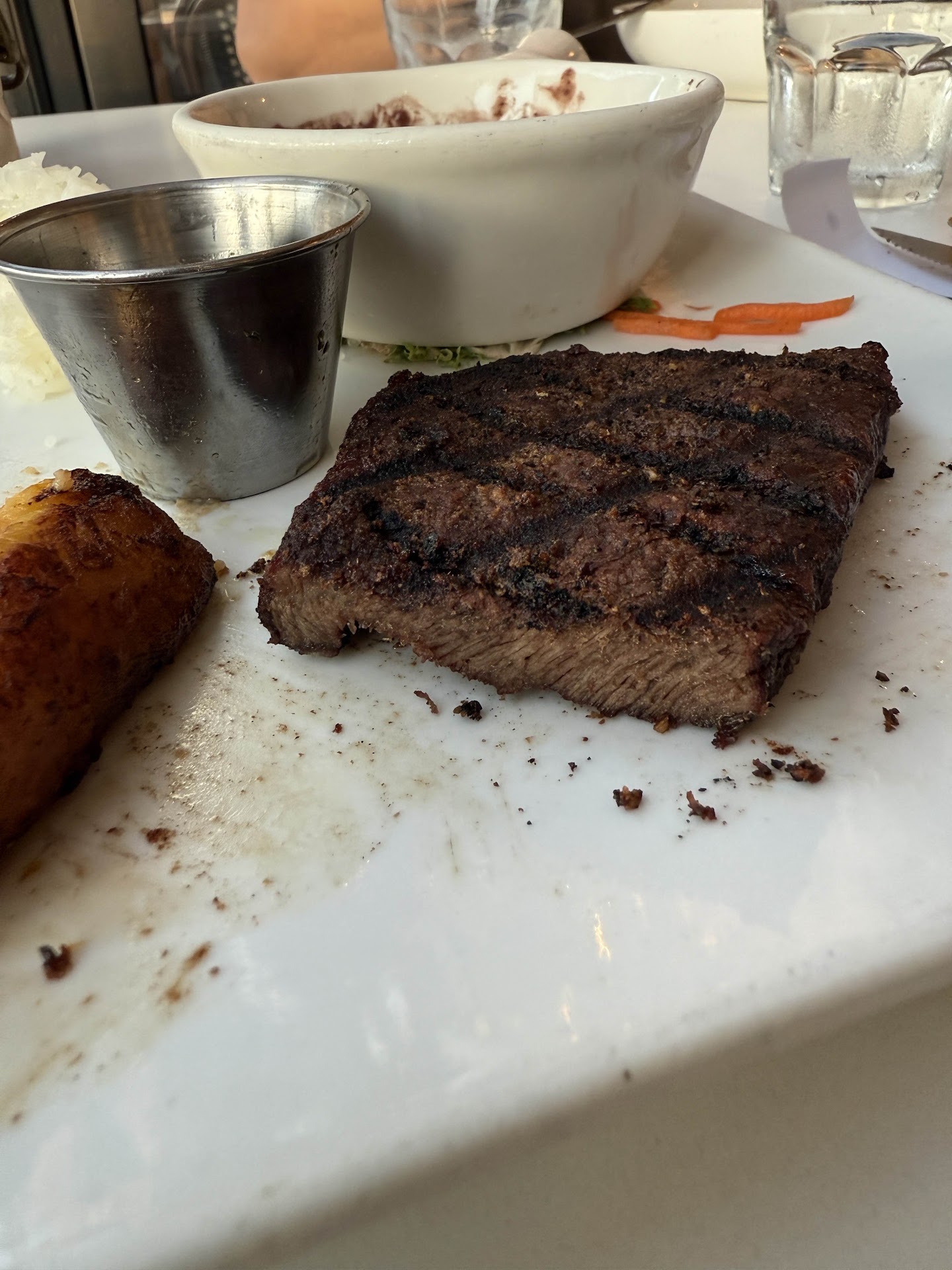 The way she handled the situation is the reason why I am writing this review. She agreed the steak was of unacceptable quality and said she wants to "investigate" the sand we had in our waters. Five minutes later she came back with our water glasses, still full of sand, said she doesn't know what's going on, offered us some 'free' desserts and sternly told me to not write any reviews. We were never offered water, we were never asked what can be made right, we were expected to pay the bill in full (which we did), offered some free desserts (which we politely declined) and sternly told to not write any reviews.