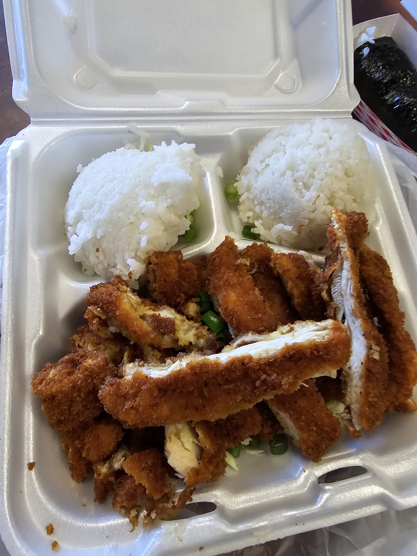 Read moreWe were visiting San Diego last week and Homestyle Hawaiian was on the way to the airport. It has great reviews, so we figured it was a win. To start the woman taking orders was kind, cheerful, and fun to talk to. I appreciate happy employees that take the time to welcome me properly. But as far as the food....I was truly hoping to taste authentic Hawaiian food, but I don't think this food was that. I could be wrong, but even some Hawaiian chain food restaurants I've been to seemed more true to Hawaii than this. After ordering, we waited 25 minutes for it to be ready. Each order came out separately, so we were eating at different times. I ordered the Katsu chicken with rice and macaroni salad. I thought the rice would have some Hawaiian flavor to it, but it was plain, white rice. I was hoping the macaroni salad would taste different than what my mom made growing up, but it didn't. It was heavy on the mayonnaise. Worst of all my chicken was plain, there was no sauce with it. It was just panko, fried chicken... I didn't realize fried chicken was a Hawaii thing. In the end, we paid a lot of money for okay, plain tasting food. I love to praise small, local joints, but this one did not please...