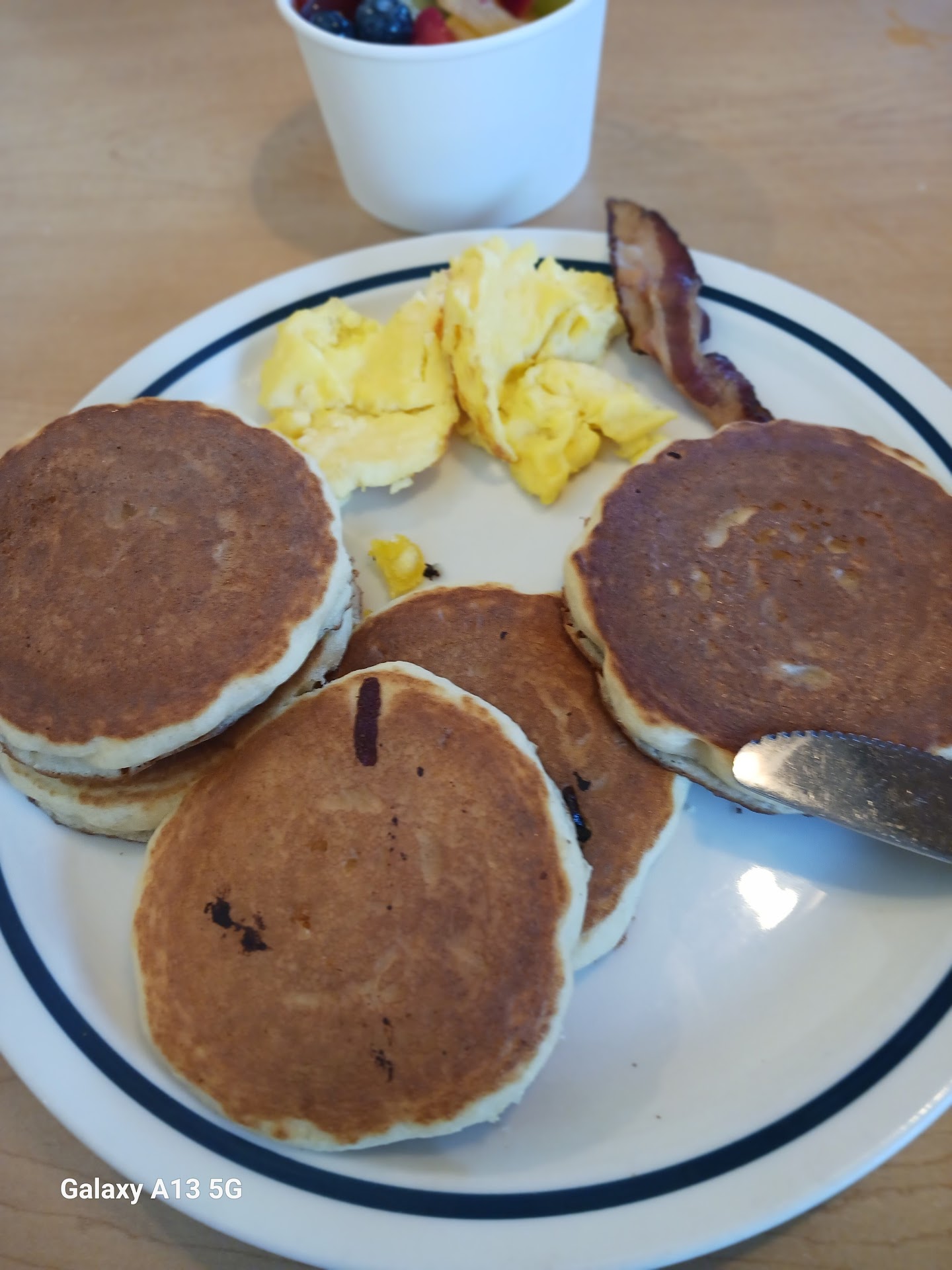 $16.99 for simple 2 pancakes 2 scrambled eggs a small side of hash browns and one slice of bacon. I was shocked at how expensive it was for just this average restaurant. And it was average food as well. It was too crowded and too noisy. I have paid less money or same at much better restaurants!