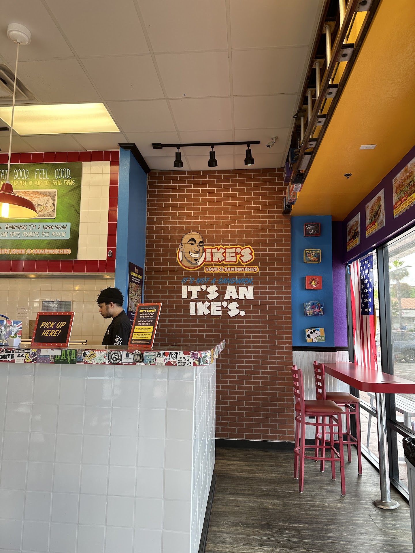 Well Ike, I have to tell you. I got love and a sandwich. Let me explain... I was leaving the local grocery store. It was a warm spring midday. The breeze was gently blowing over my bald head, and the sky was blue and empty like my tummy. I dropped my purchase in my "squirrel in a wheel" powered car and looked up and saw your sign. Ike's love and sandwiches. My tummy growled and rumbled. I knew what I had to do to calm it down. I walked to your little corner shop and stepped inside. First, let me say my eyes were met with a cacophony of color. My ears were tickled with the music of another time, and my nose... oh yes... was filled with fragrances of grilled meats from a thousand lands, fresh scent of breads from a mother's loving heart and hands. I knew i had come to the right place to sate the yearning of my grumpy tummy. I step to the counter. I was met by the cheeriest young gentleman. I looked up at the menu. There are so many choices!!! I was overwhelmed. The room began to spin, but young gentleman said: let me help you. I was grounded again. He began to describe choices of sandwiches and bread types, savory meats, and delicate cheeses. Also, fresh veggies and other flavorful toppings were mentioned. I couldn't choose it was all so... delicious and mesmerizing. And young gentleman said: let me suggest my favorite sandwich. Madison Bumgarner. A hot steak sandwich, with Ike's BBQ sauce, a light touch of habanero, pepper jack, American cheese and something called "dirty sauce" ( I didn't ask why?) It was a food award winning sandwich. I said: Yes! Yes, young gentleman, that one please with a side of chips and a soda. We laughed. I paid. A few moments later, my name was called, and my lovingly wrapped sandwich was handed over to me with a kind smile. I sat at a table and gently peeled back the wrap and revealed my warm Madison Bumgarner. It smelled so fresh and flavorful. After a grateful prayer of thanks, I raised the sandwich and took a bite. The flavor was amazing, so many layers of deliciousness... I lifted my eyes and met the eyes of Young Gentleman. He smiled and gently nodded at me and gave a thumbs up. I nodded back, and with a deep sigh of satisfaction, I bit into the soft warm bread of my Madison Bumgarner sandwich. It was amazing... LoL go the sandwiches are great there is something for everyone. And say hello to...