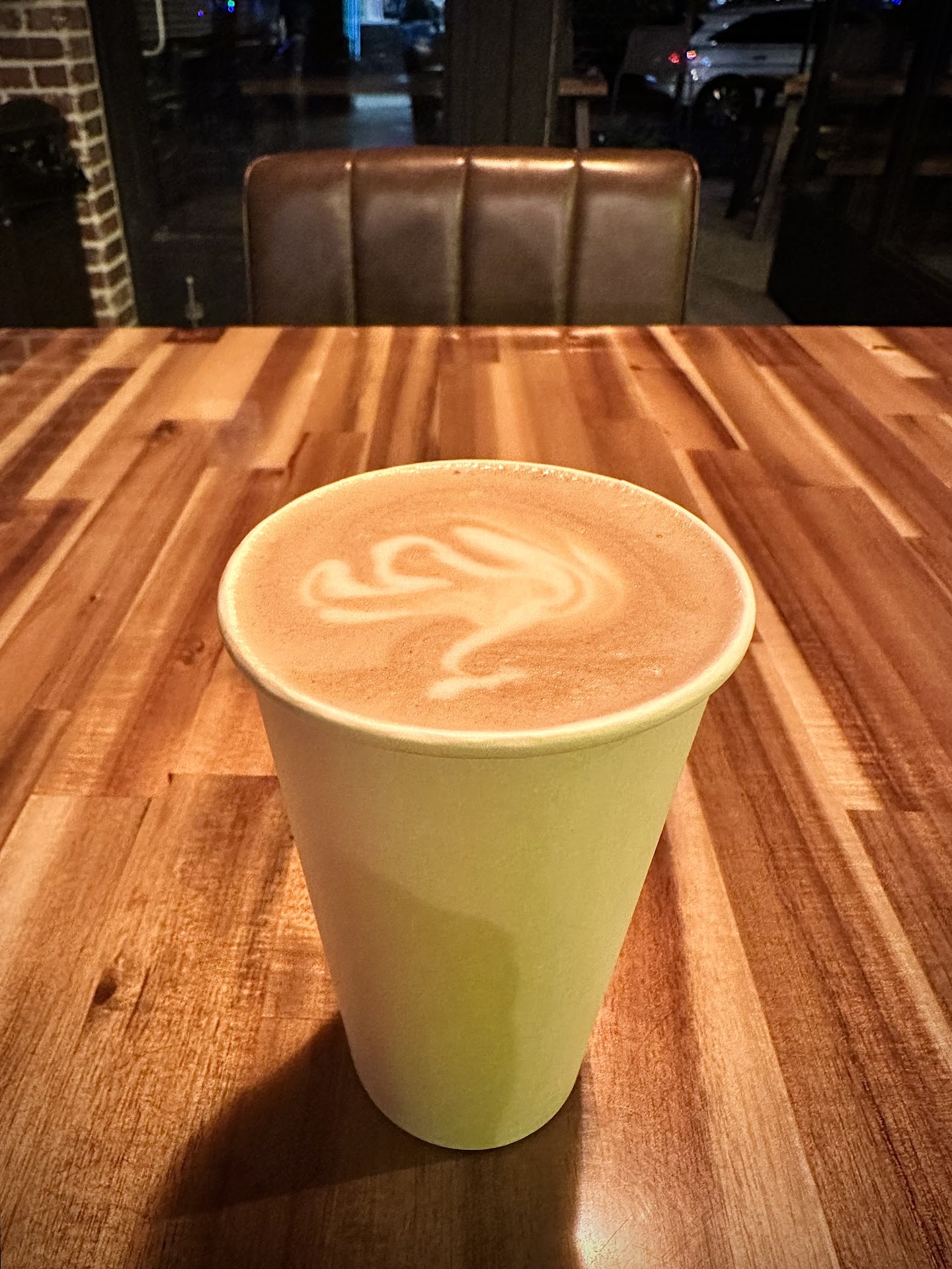 Lattes are unremarkable for the price. On my most recent visit, the service was surprisingly un-enthusiastic and robotic. I was not even asked if I wanted take-away or dine in, hence the to-go cup which I’m sure limited the barista’s execution of latte art. Balanced and mellow, but rather weak and not worth $6.50 - especially when it is being served with all the friendly cheer you’d expect from an angsty emo band’s lead singer.