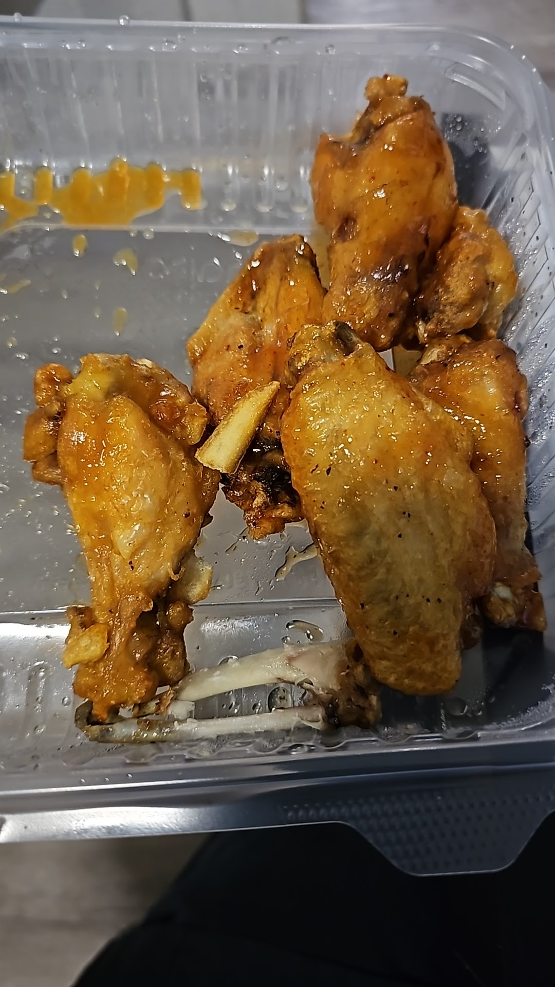 My order, after waiting 45 mins since I placed it, consisted of wings that were not even close to being hot, seasoned, and edible (think rubber), paired with fries that were of the same quality . I’ll give them a star for consistency.